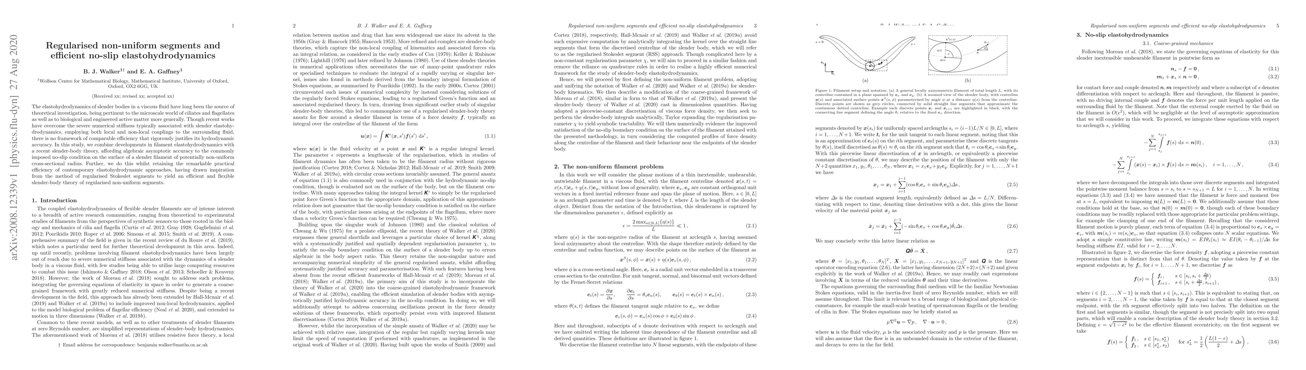 This paper develops a new efficient and accurate framework for elastohydrodynamics of slender bodies, combining filament theory with regularised non-uniform segments to achieve algebraic asymptotic accuracy under the no-slip condition while maintaining practical computational efficiency. This approach is particularly relevant for understanding the dynamics of ciliates, flagellates, and engineered active matter.