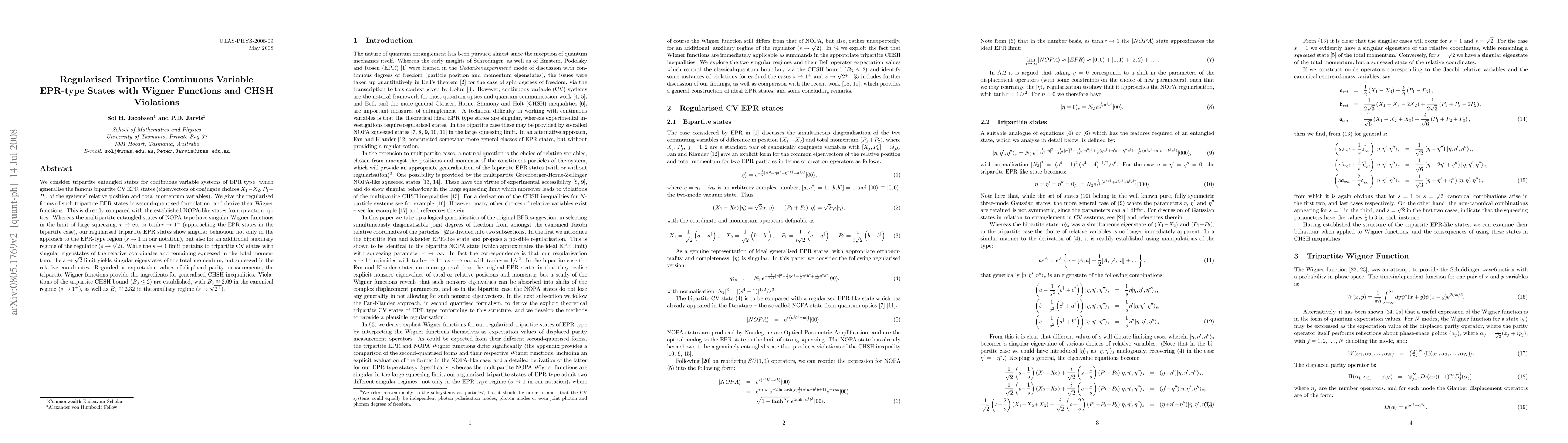 This paper investigates regularised tripartite continuous variable EPR-type states, deriving their Wigner functions and comparing them to NOPA-like states. It demonstrates violations of the tripartite CHSH inequality in two distinct regimes, showing B3 values of approximately 2.09 and 2.32.