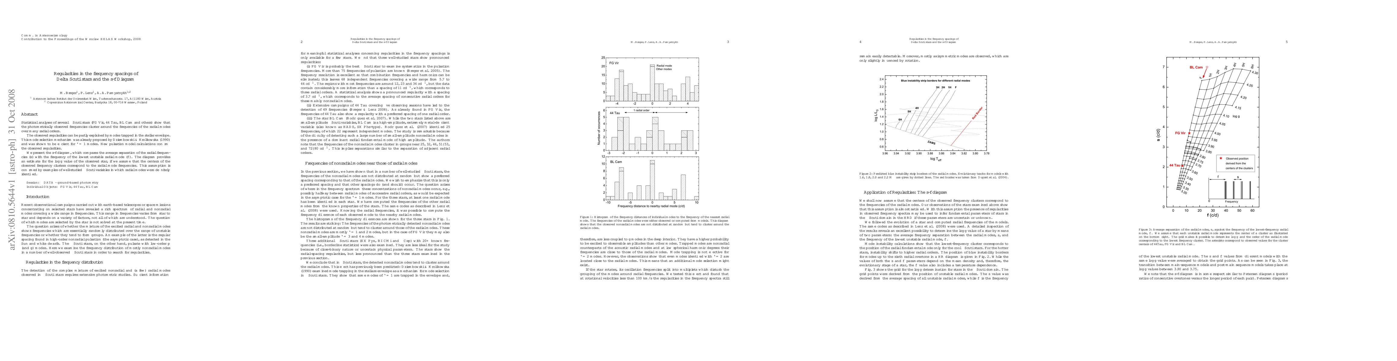 This paper analyzes Delta Scuti stars and finds that observed frequencies cluster around radial modes, suggesting a mode selection mechanism. The s-f diagram correlates radial frequency separation with the lowest unstable radial mode frequency, aiding in estimating the star's log g value.