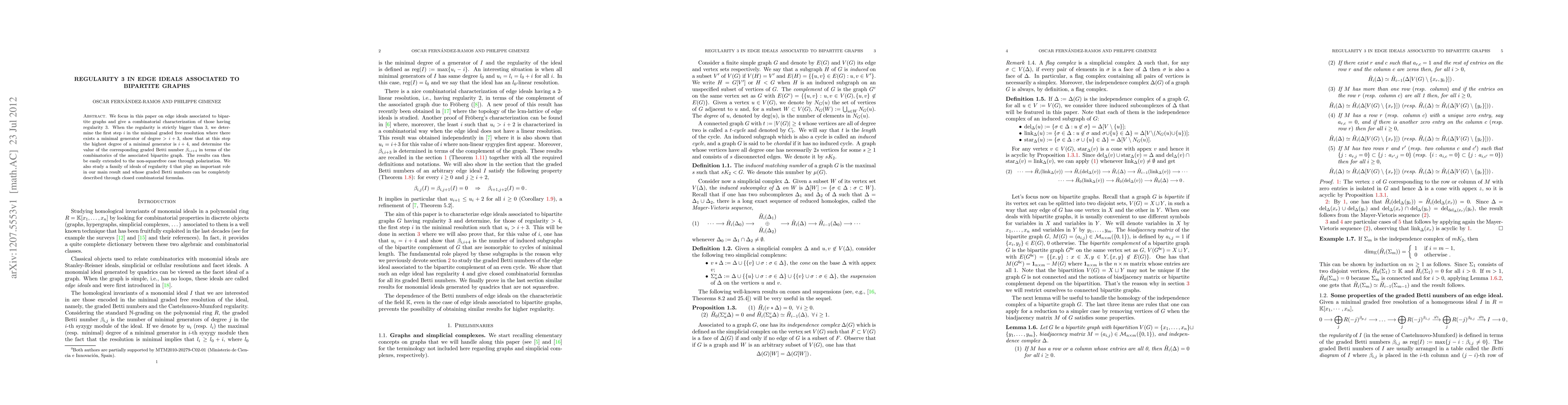 This paper characterizes edge ideals of bipartite graphs with regularity 3 and explores the structure of ideals with higher regularity, determining the first step in their graded free resolution where minimal generators exceed the expected degree, and providing combinatorial formulas for the associated graded Betti numbers. It also extends these results to the non-squarefree case using polarization and describes ideals of regularity 4 with explicit graded Betti number formulas.