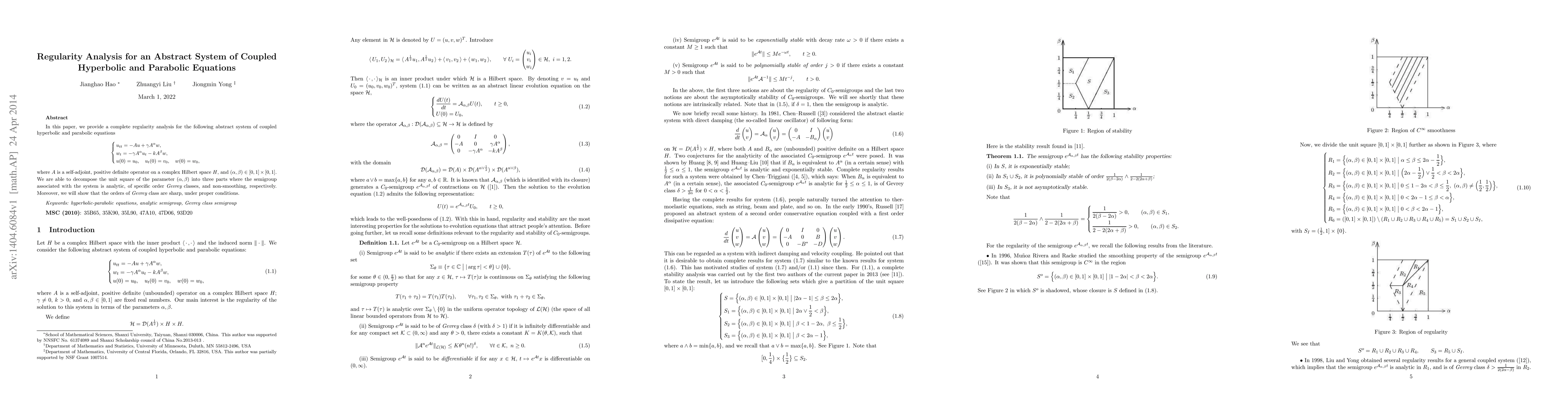 Researchers developed a regularity analysis for an abstract system of coupled hyperbolic and parabolic equations, finding that the semigroup associated with the system is analytic in specific regions.