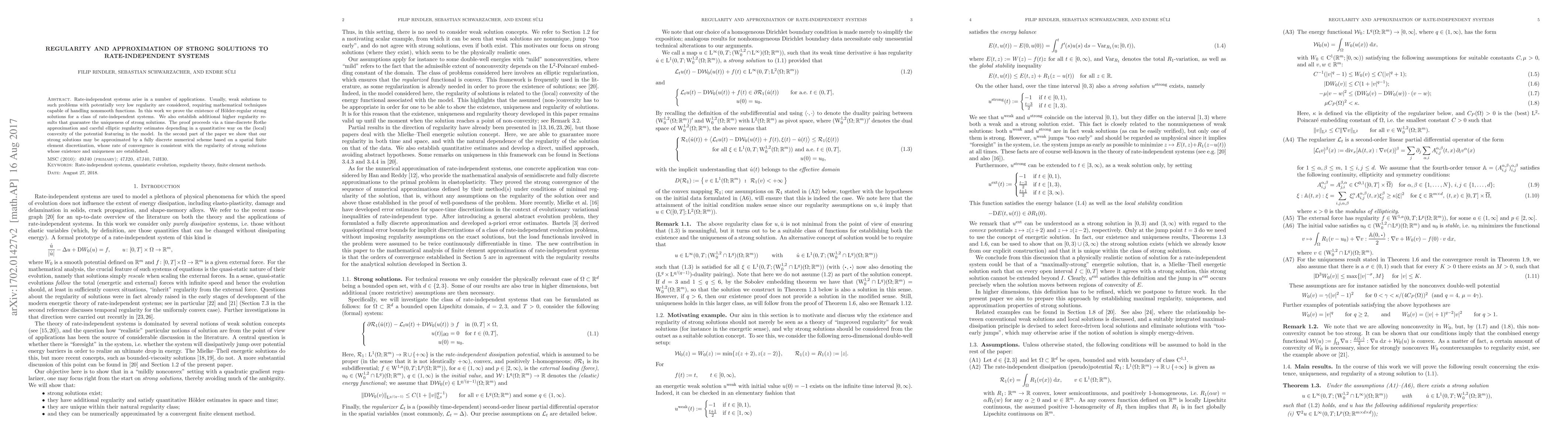 Rate-independent systems arise in a number of applications. Usually, weak solutions to such problems with potentially very low regularity are considered, requiring mathematical techniques capable of handling nonsmooth functions. In this work we prove the existence of H\"older-regular strong solutions for a class of rate-independent systems. We also establish additional higher regularity results that guarantee the uniqueness of strong solutions. The proof proceeds via a time-discrete Rothe approximation and careful elliptic regularity estimates depending in a quantitative way on the (local) convexity of the potential featuring in the model. In the second part of the paper we show that our strong solutions may be approximated by a fully discrete numerical scheme based on a spatial finite element discretization, whose rate of convergence is consistent with the regularity of strong solutions whose existence and uniqueness are established.