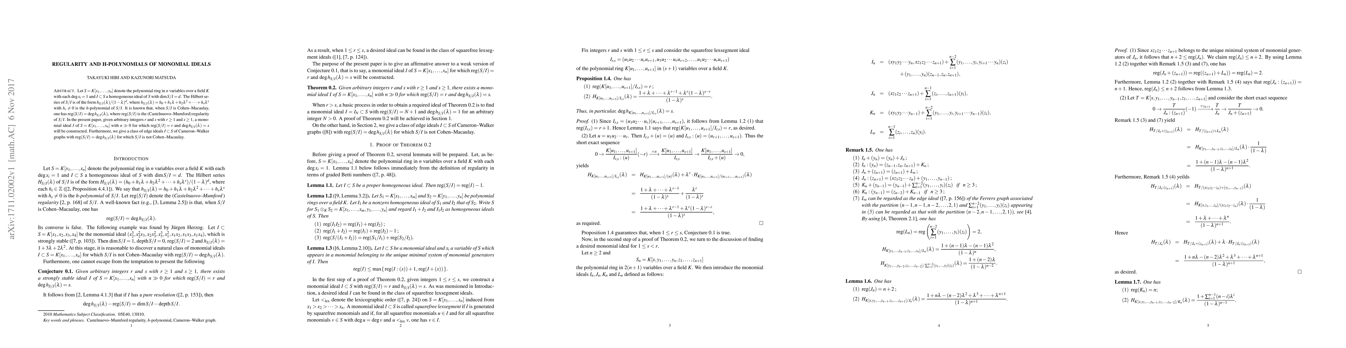 Researchers construct a monomial ideal with specific properties, including regularity and h-polynomial values that differ from the Cohen-Macaulay case, providing counterexamples to known results.