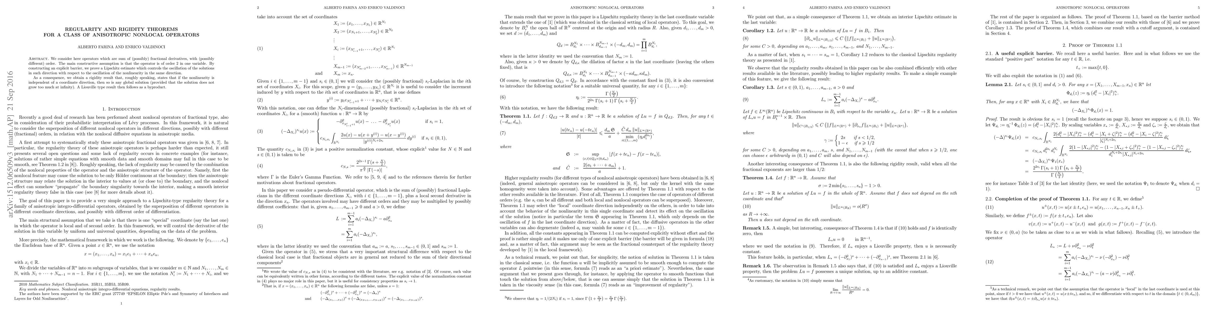 We consider here operators which are sum of (possibly) fractional derivatives, with (possibly different) order. The main constructive assumption is that the operator is of order~$2$ in one variable. By constructing an explicit barrier, we prove a Lipschitz estimate which controls the oscillation of the solutions in such direction with respect to the oscillation of the nonlinearity in the same direction. As a consequence, we obtain a rigidity result that, roughly speaking, states that if the nonlinearity is independent of a coordinate direction, then so is any global solution (provided that the solution does not grow too much at infinity). A Liouville type result then follows as a byproduct.