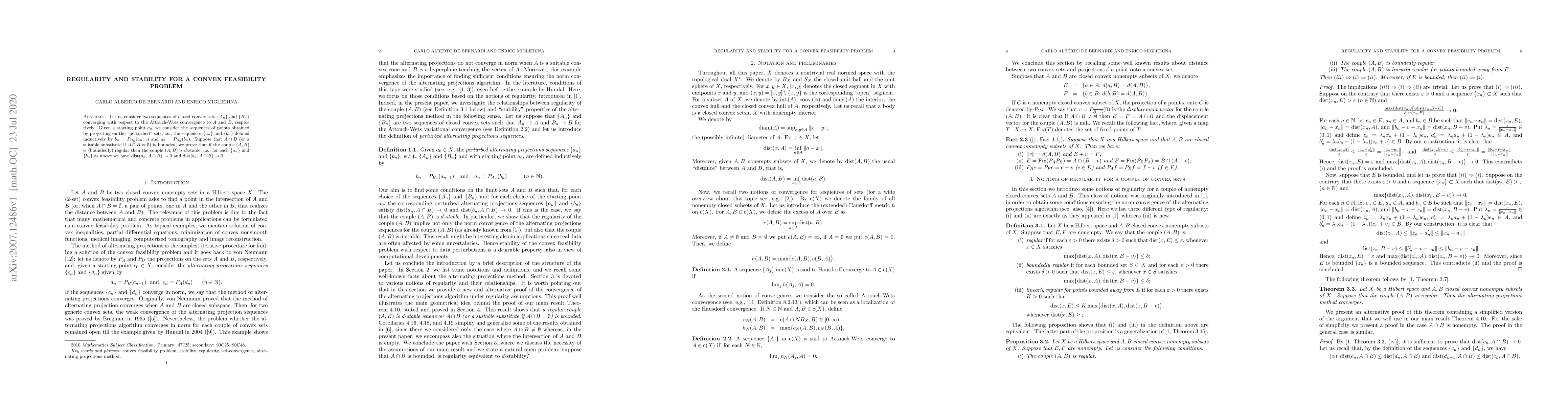 Let us consider two sequences of closed convex sets $\{A_n\}$ and $\{B_n\}$ converging with respect to the Attouch-Wets convergence to $A$ and $B$, respectively. Given a starting point $a_0$, we consider the sequences of points obtained by projecting on the "perturbed" sets, i.e., the sequences $\{a_n\}$ and $\{b_n\}$ defined inductively by $b_n=P_{B_n}(a_{n-1})$ and $a_n=P_{A_n}(b_n)$. Suppose that $A\cap B$ (or a suitable substitute if $A \cap B=\emptyset$) is bounded, we prove that if the couple $(A,B)$ is (boundedly) regular then the couple $(A,B)$ is $d$-stable, i.e., for each $\{a_n\}$ and $\{b_n\}$ as above we have $\mathrm{dist}(a_n,A\cap B)\to 0$ and $\mathrm{dist}(b_n,A\cap B)\to 0$.