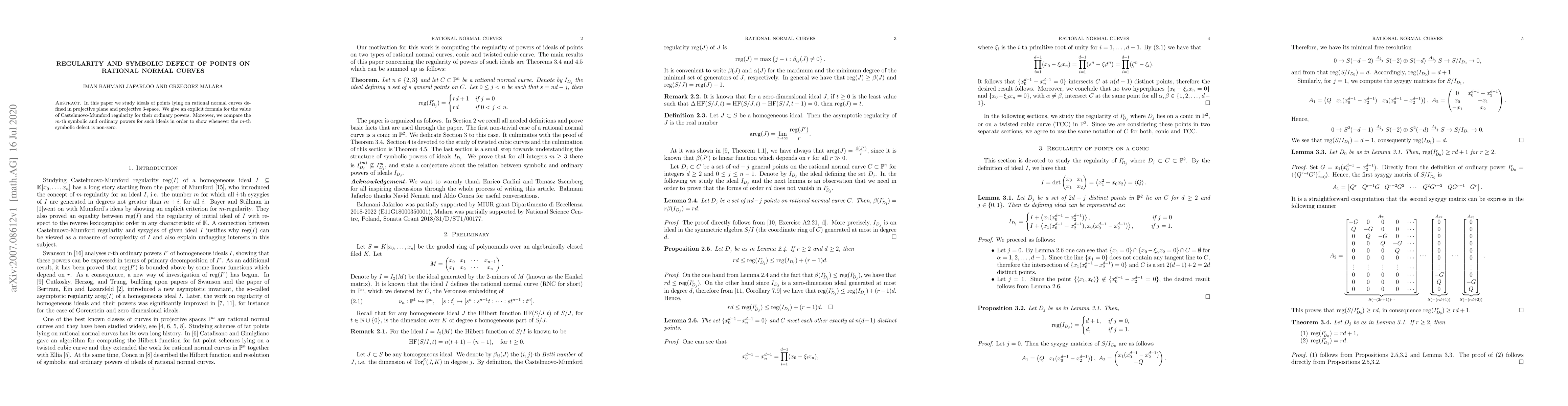 This paper investigates the ideals of points on rational normal curves in projective plane and $3$-space, providing an explicit formula for their Castelnuovo-Mumford regularity for ordinary powers. It also compares the $m$-th symbolic and ordinary powers to determine when the $m$-th symbolic defect is non-zero.