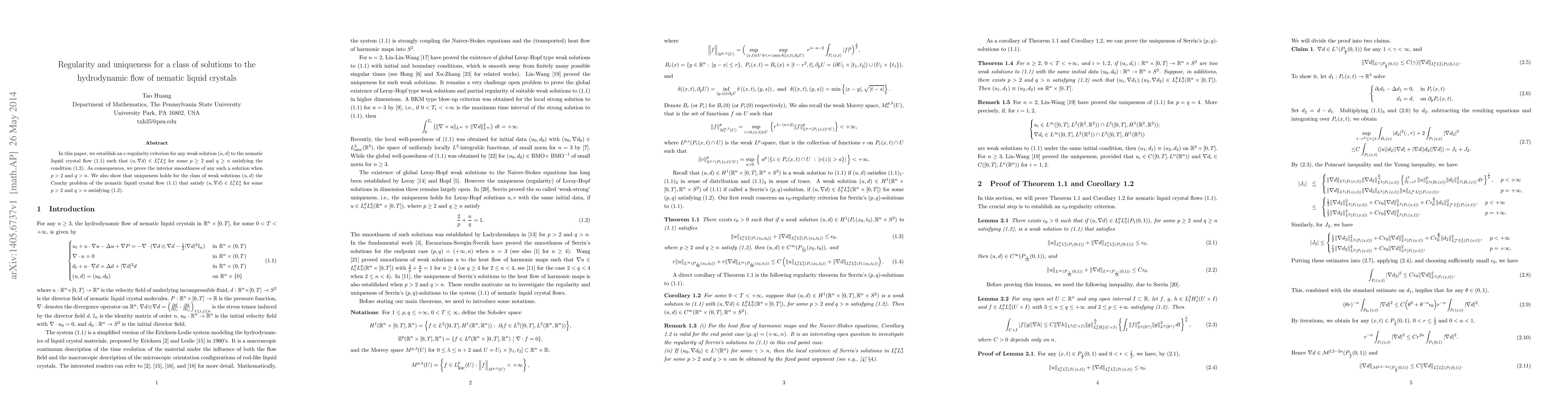 In this paper, we establish an $\epsilon$-regularity criterion for any weak solution $(u,d)$ to the nematic liquid crystal flow (1.1) such that $(u,\nabla d)\in L^p_tL^q_x$ for some $p\ge 2$ and $q\ge n$ satisfying the condition (1.2). As consequences, we prove the interior smoothness of any such a solution when $p>2$ and $q>n$. We also show that uniqueness holds for the class of weak solutions $(u,d)$ the Cauchy problem of the nematic liquid crystal flow (1.1) that satisfy $(u,\nabla d)\in L^p_tL^q_x$ for some $p>2$ and $q>n$ satisfying (1.2).