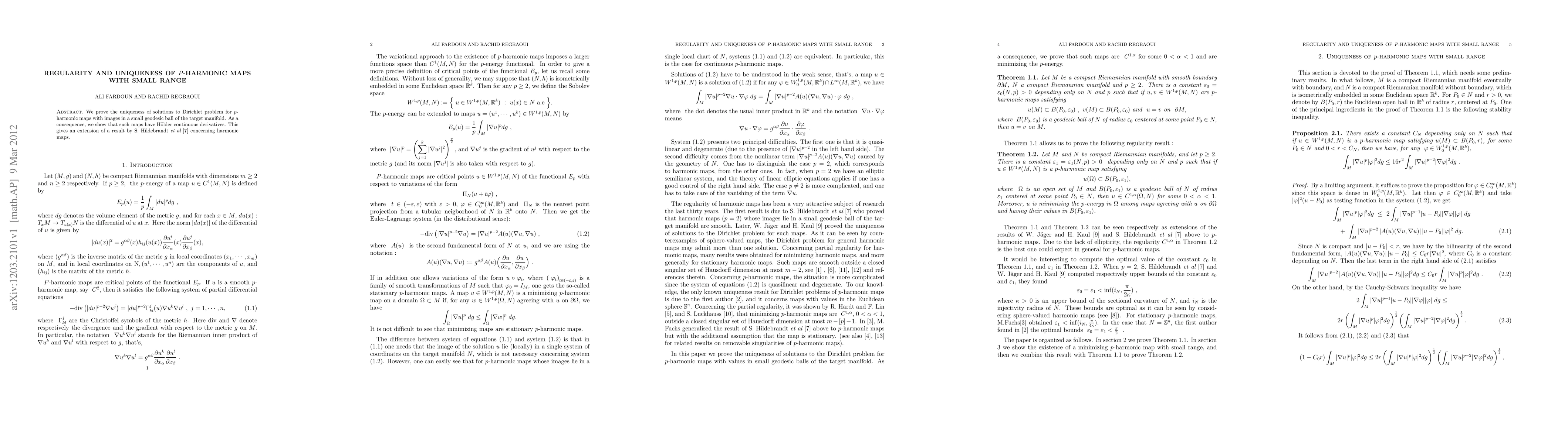 We prove the uniqueness of solutions to Dirichlet problem for p-harmonic maps with images in a small geodesic ball of the target manifold. As a consequence, we show that such maps have Hoelder continuous derivatives. This gives an extension of a result by S. Hildebrandt et al concerning harmonic maps.
