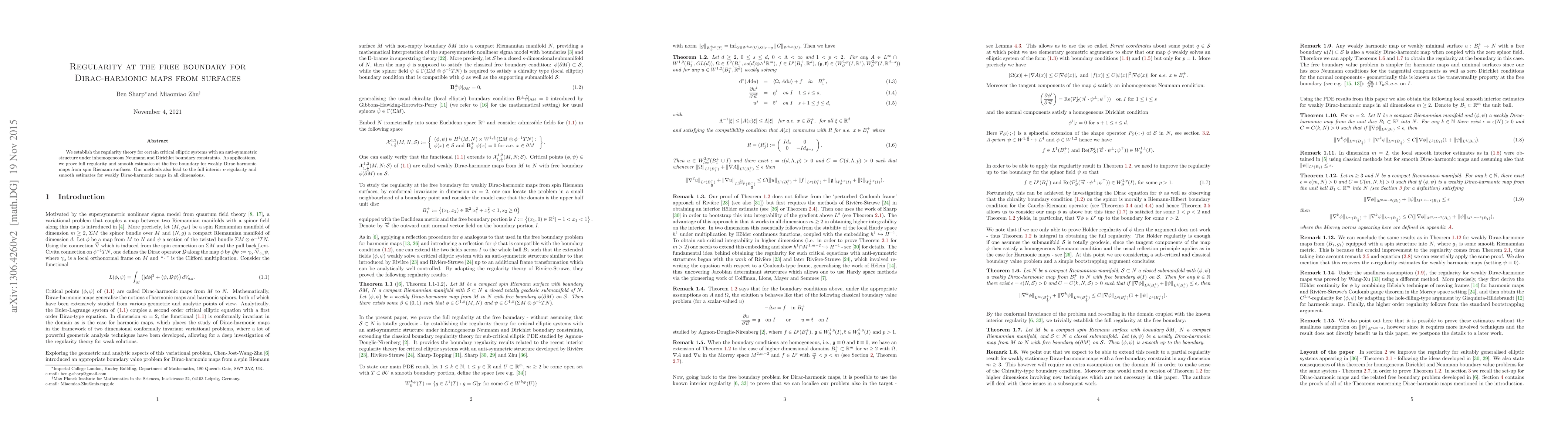 The work presents novel approaches to regularity theory for Dirac-harmonic maps, particularly at the free boundary, and extends known results from two dimensions to all dimensions.