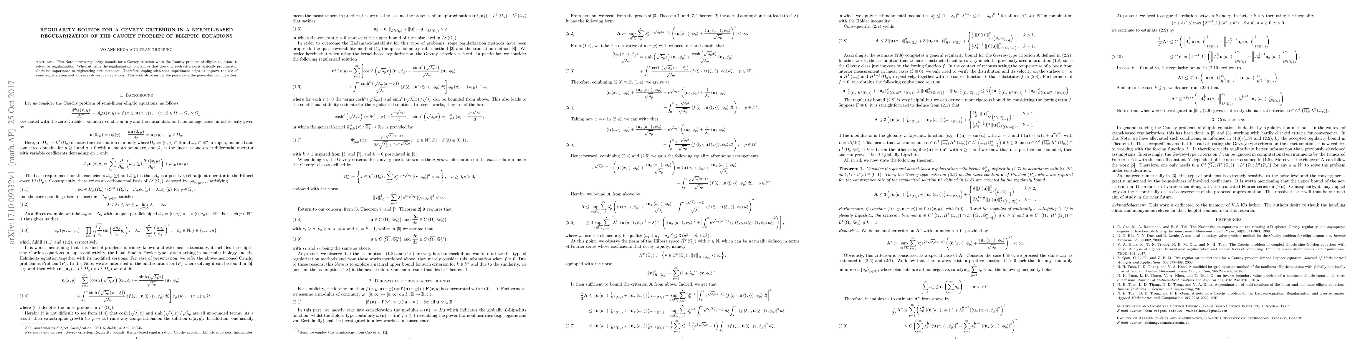 This Note derives regularity bounds for a Gevrey criterion when the Cauchy problem of elliptic equations is solved by regularization. When utilizing the regularization, one knows that checking such criterion is basically problematic, albeit its importance to engineering circumstances. Therefore, coping with that impediment helps us improve the use of some regularization methods in real-world applications. This work also consider the presence of the power-law nonlinearities.