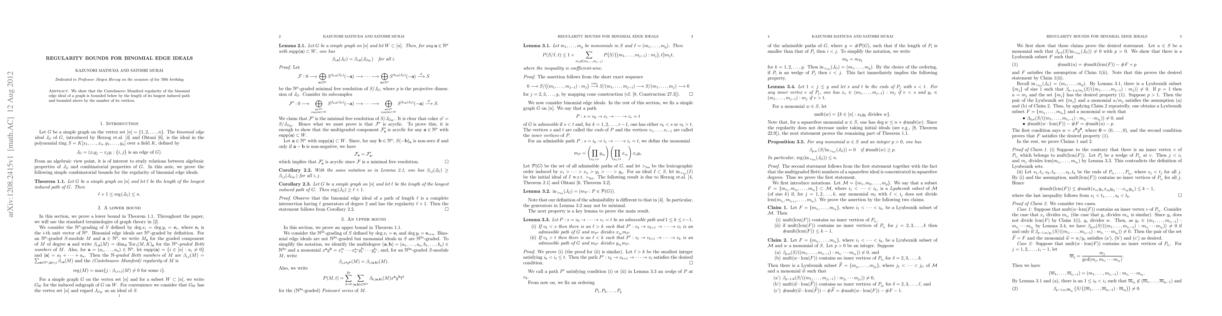 The binomial edge ideal of a graph has regularity bounded below by its longest induced path length and above by its number of vertices.