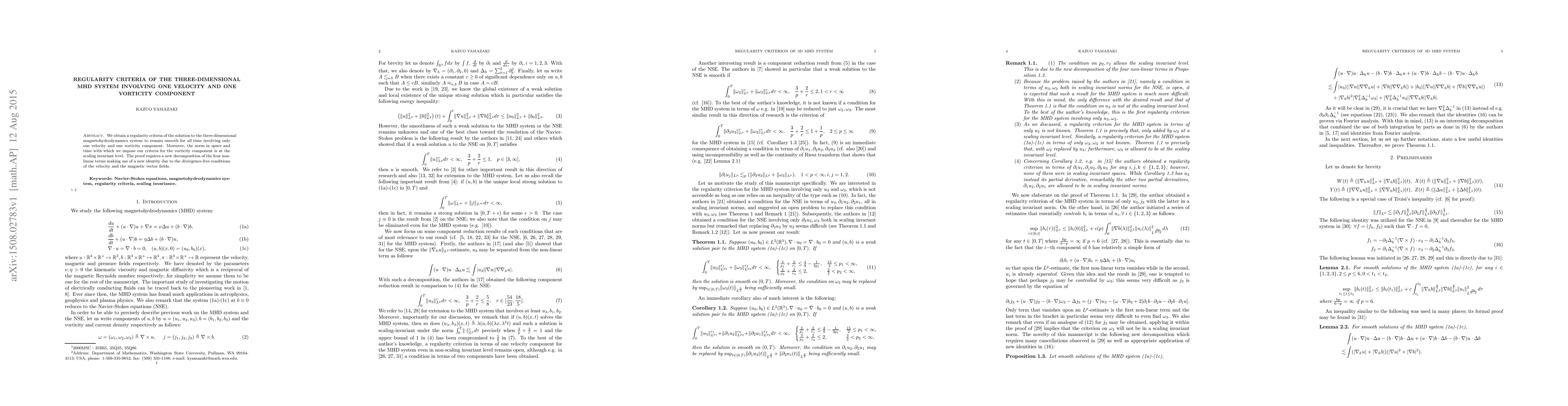 Researchers developed a regularity criteria for a 3D magnetohydrodynamics system with only one velocity and vorticity component, ensuring the solution remains smooth over time.