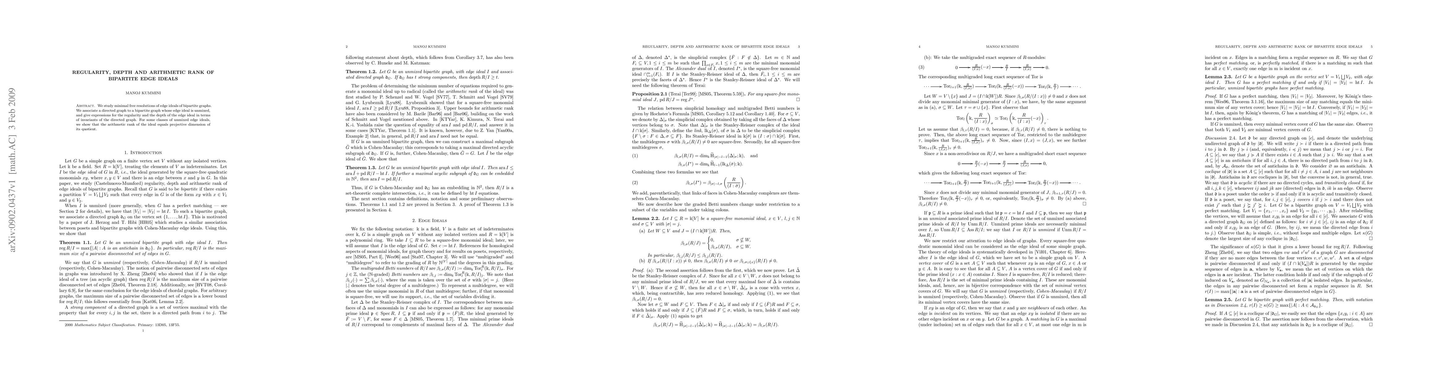 This research investigates the minimal free resolutions of edge ideals from bipartite graphs, establishing connections between their properties and invariants of associated directed graphs, and proving that the arithmetic rank matches the projective dimension for certain classes of unmixed edge ideals.