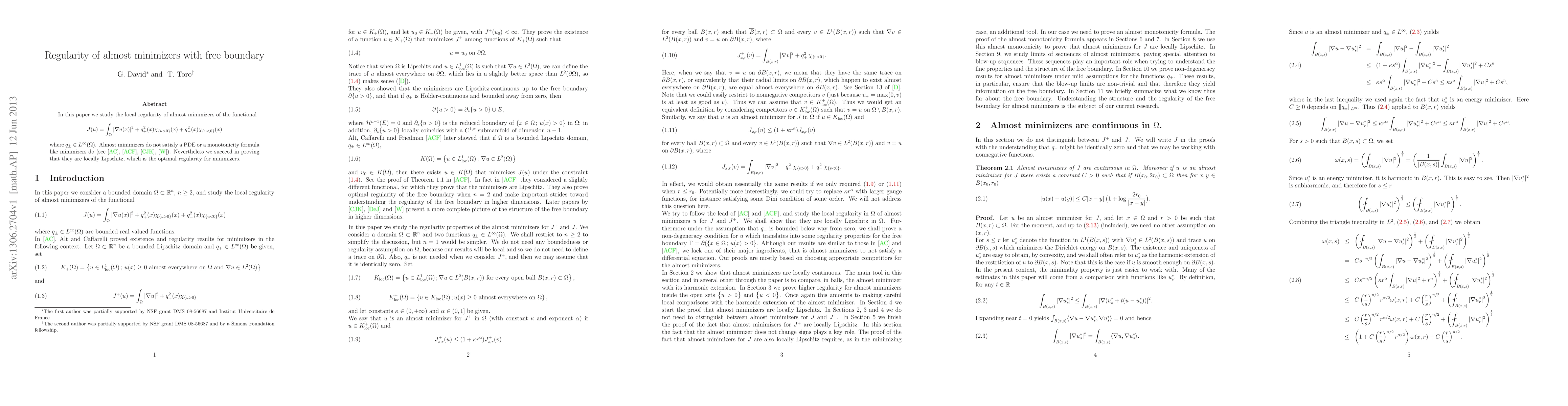 In this paper we study the local regularity of almost minimizers of the functional \begin{equation*} J(u)=\int_\Omega |\nabla u(x)|^2 +q^2_+(x)\chi_{\{u>0\}}(x) +q^2_-(x)\chi_{\{u<0\}}(x) \end{equation*} where $q_\pm \in L^\infty(\Omega)$. Almost minimizers do not satisfy a PDE or a monotonicity formula like minimizers do (see \cite{AC}, \cite{ACF}, \cite{CJK}, \cite{W}). Nevertheless we succeed in proving that they are locally Lipschitz, which is the optimal regularity for minimizers.