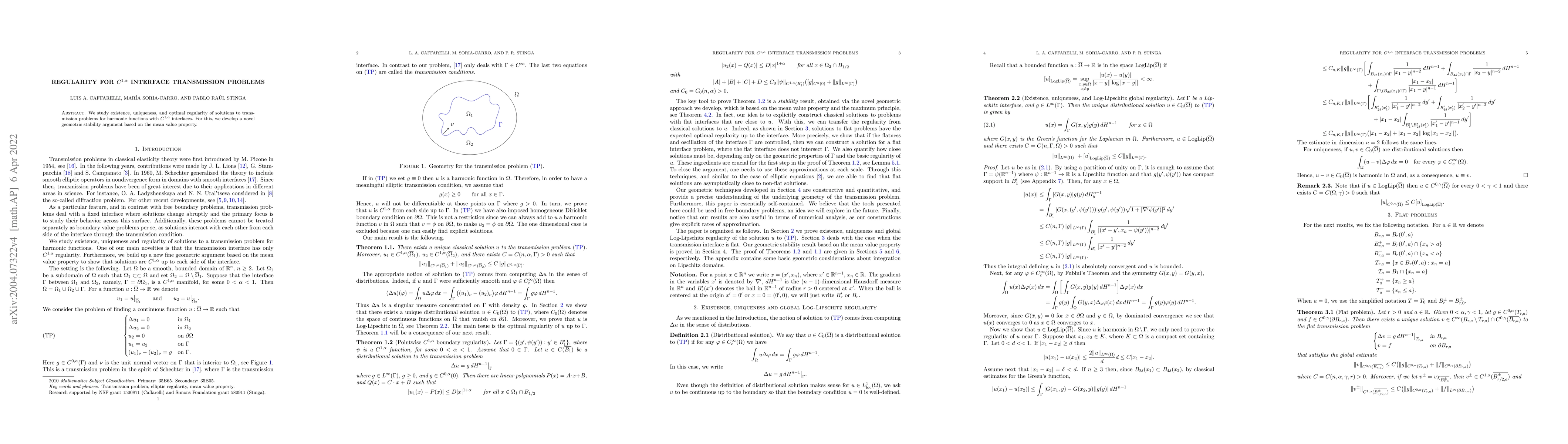 This paper investigates the existence, uniqueness, and optimal regularity of solutions to transmission problems involving harmonic functions across $C^{1,\alpha}$ interfaces. It introduces a novel geometric stability argument leveraging the mean value property to achieve these results.