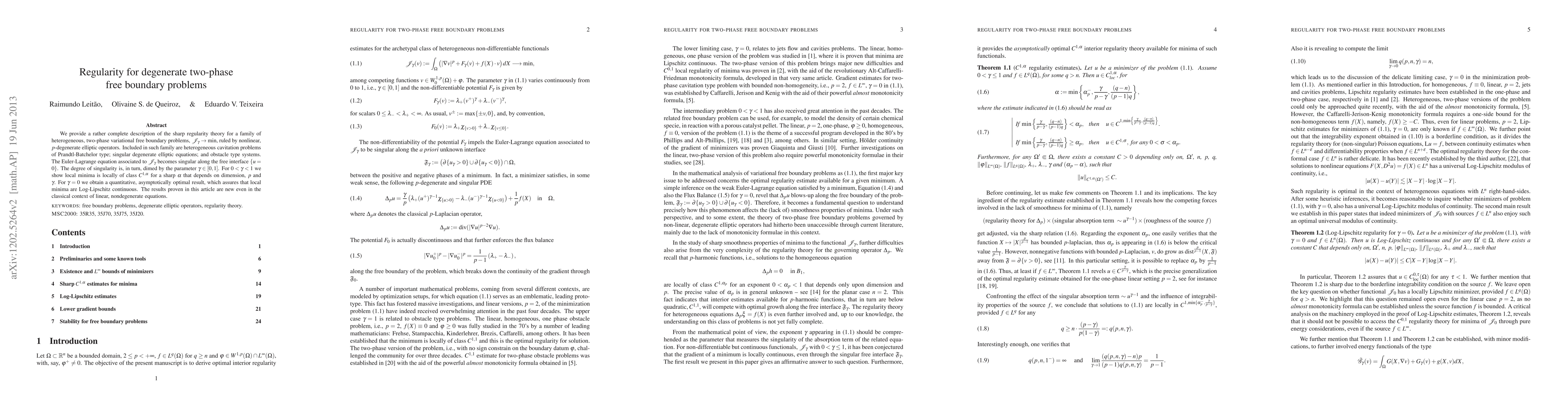 We provide a rather complete description of the sharp regularity theory for a family of heterogeneous, two-phase variational free boundary problems, $\mathcal{J}_\gamma \to $ min, ruled by nonlinear, $p$-degenerate elliptic operators. Included in such family are heterogeneous cavitation problems of Prandtl-Batchelor type; singular degenerate elliptic equations; and obstacle type systems. The Euler-Lagrange equation associated to $\mathcal{J}_\gamma$ becomes singular along the free interface $\{u= 0\}$. The degree of singularity is, in turn, dimed by the parameter $\gamma \in [0,1]$. For $0< \gamma < 1$ we show local minima is locally of class $C^{1,\alpha}$ for a sharp $\alpha$ that depends on dimension, $p$ and $\gamma$. For $\gamma = 0$ we obtain a quantitative, asymptotically optimal result, which assures that local minima are Log-Lipschitz continuous. The results proven in this article are new even in the classical context of linear, nondegenerate equations.