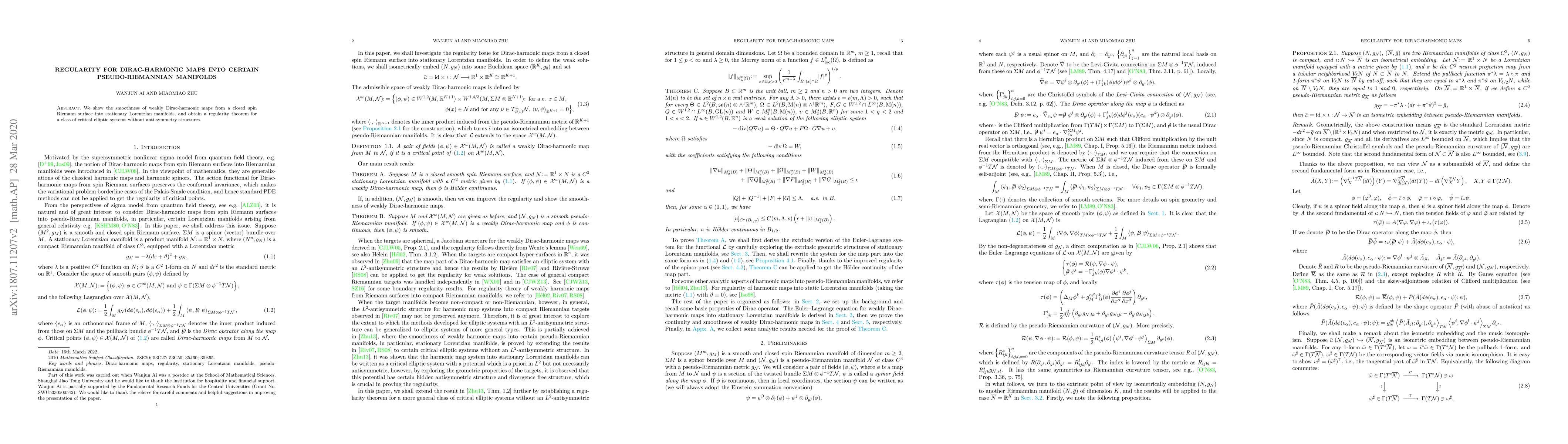 Summary: This paper proves the smoothness of weakly Dirac-harmonic maps from closed spin Riemann surfaces into stationary Lorentzian manifolds and establishes a regularity theorem for a class of critical elliptic systems lacking anti-symmetry structures.