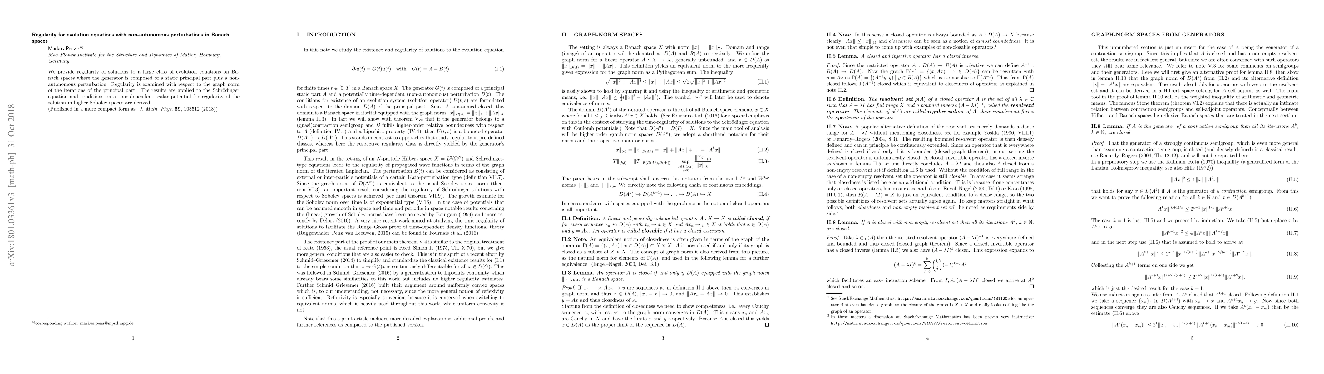 We provide regularity of solutions to a large class of evolution equations on Banach spaces where the generator is composed of a static principal part plus a non-autonomous perturbation. Regularity is examined with respect to the graph norm of the iterations of the principal part. The results are applied to the Schr\"odinger equation and conditions on a time-dependent scalar potential for regularity of the solution in higher Sobolev spaces are derived.