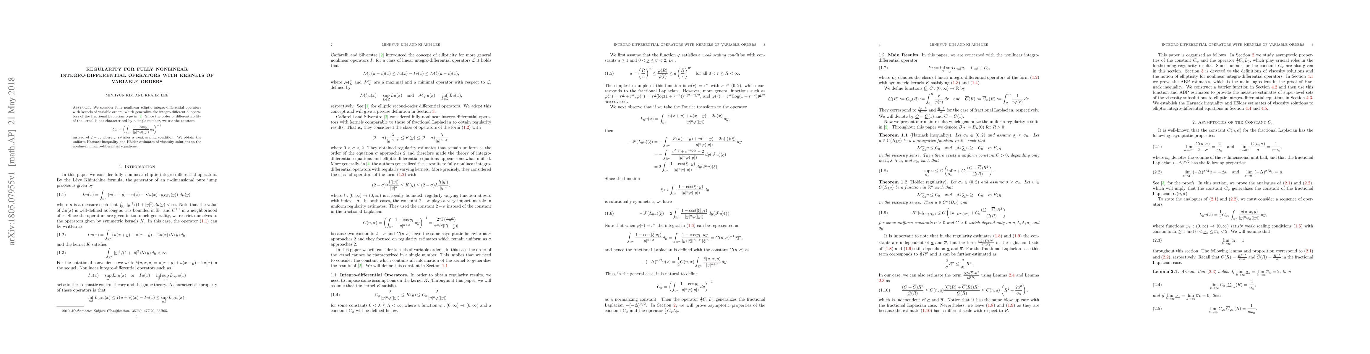 This paper studies fully nonlinear elliptic integro-differential operators with variable-order kernels, generalizing fractional Laplacian operators. It establishes a uniform Harnack inequality and H\"older estimates for viscosity solutions using a new constant $C_\varphi$ instead of the fixed $2-\sigma$ parameter.