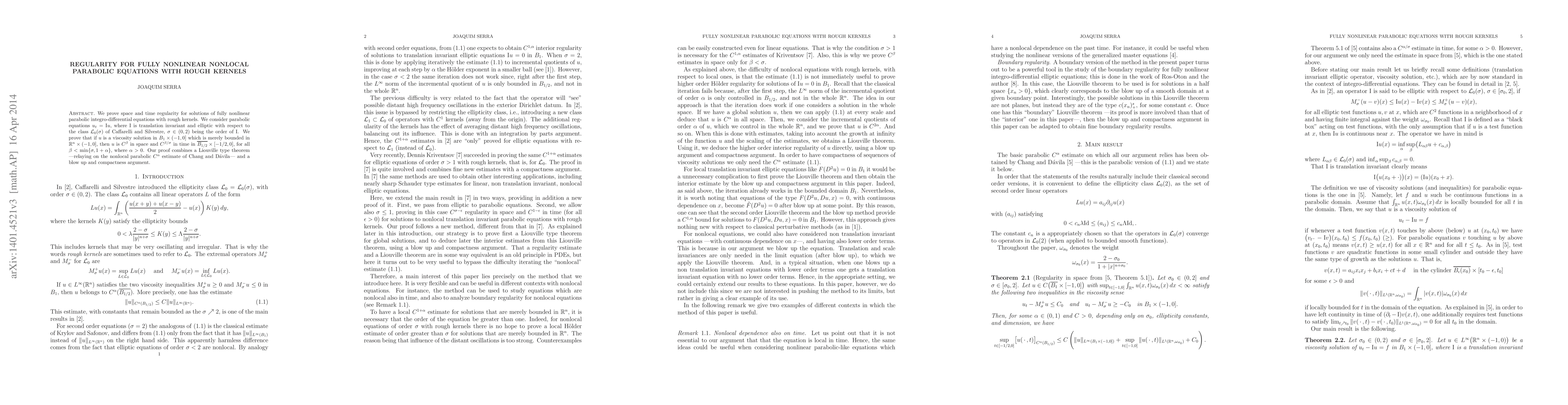 This paper proves regularity for solutions of fully nonlinear parabolic integro-differential equations with rough kernels, showing that bounded viscosity solutions are Hölder continuous in space and time. The proof utilizes a Liouville-type theorem and a blow-up and compactness argument.