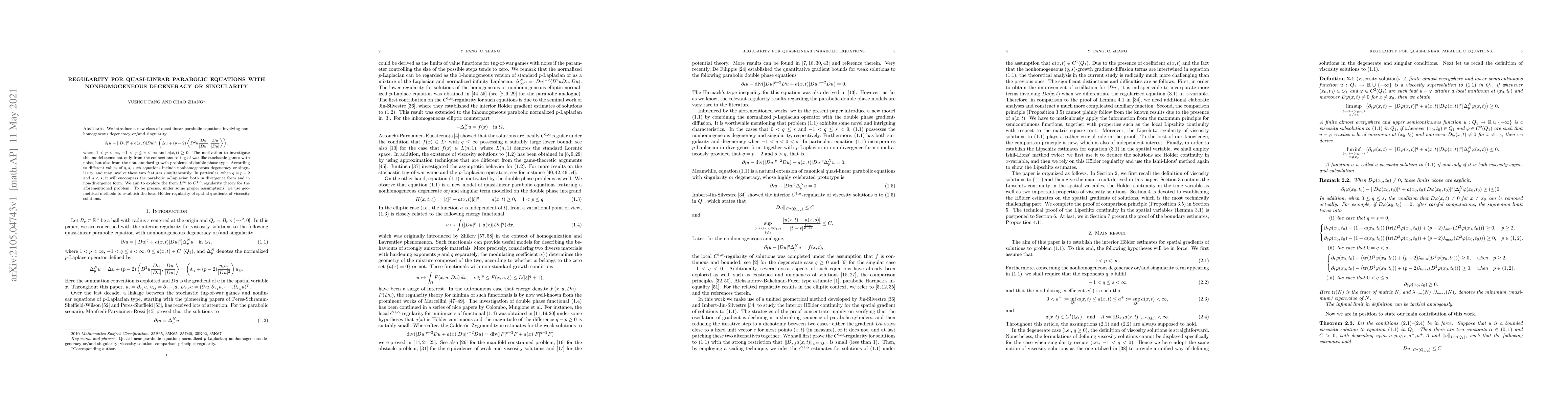 We introduce a new class of quasi-linear parabolic equations involving nonhomogeneous degeneracy or/and singularity $$ \partial_t u=[|D u|^q+a(x,t)|D u|^s]\left(\Delta u+(p-2)\left\langle D^2 u\frac{D u}{|D u|},\frac{D u}{|D u|}\right\rangle\right), $$ where $1