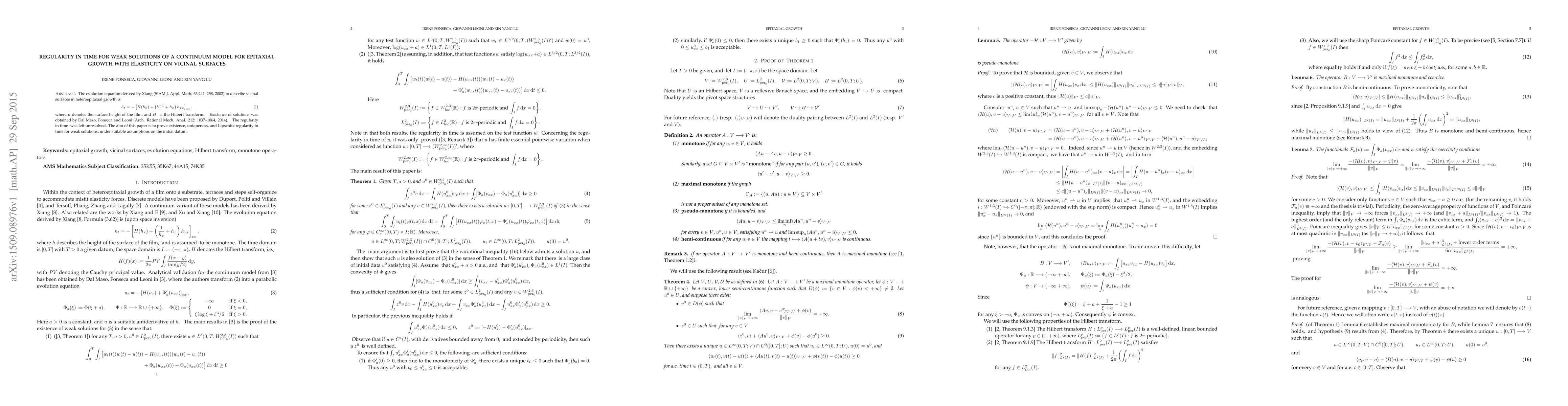 The evolution equation derived by Xiang (SIAM J. Appl. Math. 63:241--258, 2002) to describe vicinal surfaces in heteroepitaxial growth is $$ h_t=-\left[ H(h_x)+\left(h_x^{-1}+h_x \right) h_{xx}\right]_{xx}, $$ where $h$ denotes the surface height of the film, and $H$ is the Hilbert transform. Existence of solutions was obtained by Dal Maso, Fonseca and Leoni (Arch. Rational Mech. Anal. 212: 1037--1064, 2014). The regularity in time was left unresolved. The aim of this paper is to prove existence, uniqueness, and Lipschitz regularity in time for weak solutions, under suitable assumptions on the initial datum.