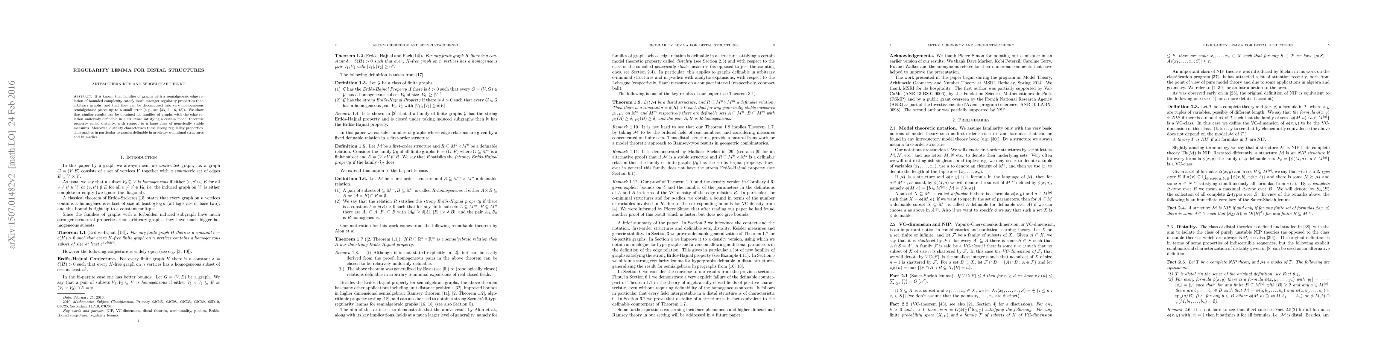 The paper demonstrates that graphs with uniformly definable edge relations in distal structures exhibit strong regularity properties and can be decomposed into homogeneous pieces, similar to semialgebraic graphs. Distality is shown to be a key model-theoretic property characterizing these regularity results.