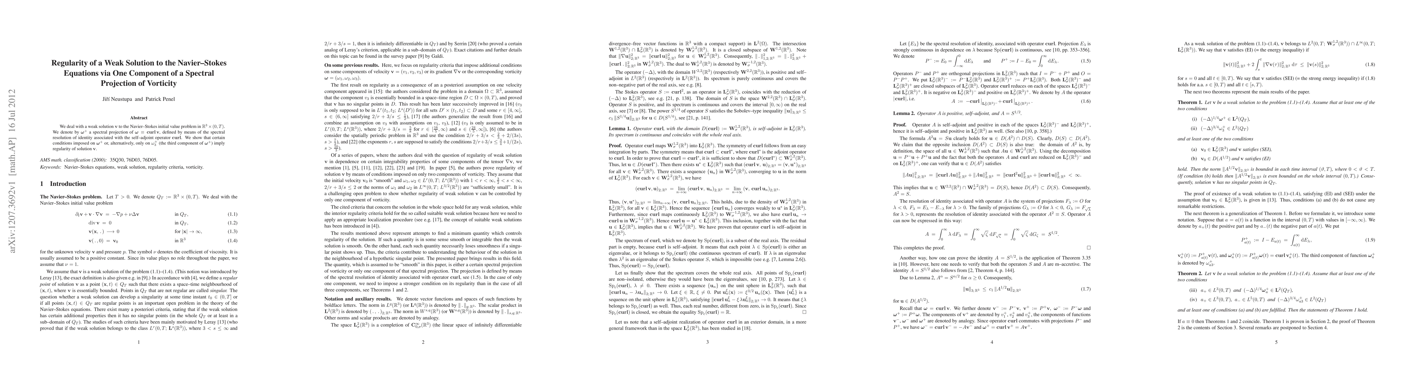 We deal with a weak solution v to the Navier-Stokes initial value problem in R^3 x(0,T). We denote by \omega^+ a spectral projection of \omega=\curl\, v, defined by means of the spectral resolution of identity associated with the self-adjoint operator \curl. We show that certain conditions imposed on \omega^+ or, alternatively, only on \omega^+_3 (the third component of \omega^+) imply regularity of solution v.