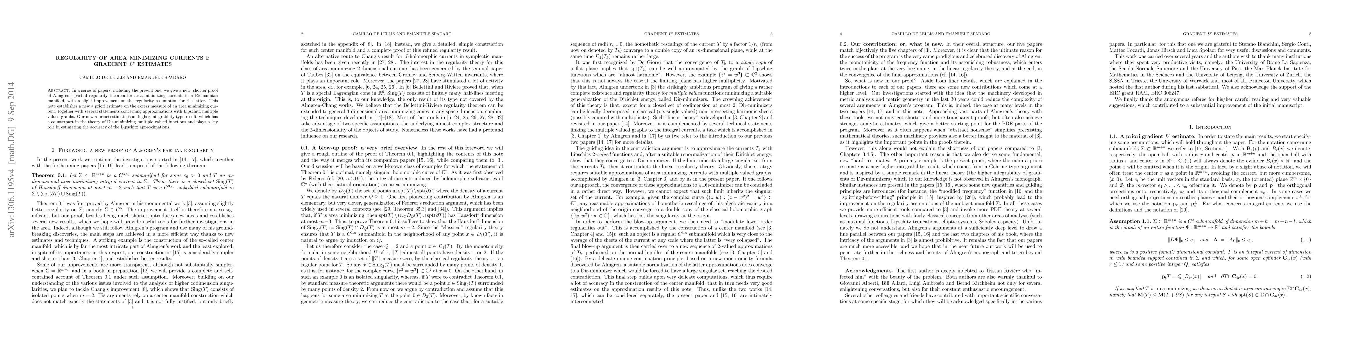 In a series of papers, including the present one, we give a new, shorter proof of Almgren's partial regularity theorem for area minimizing currents in a Riemannian manifold, with a slight improvement on the regularity assumption for the latter. This note establishes a new a priori estimate on the excess measure of an area minimizing current, together with several statements concerning approximations with Lipschitz multiple valued graphs. Our new a priori estimate is an higher integrability type result, which has a counterpart in the theory of Dir-minimizing multiple valued functions and plays a key role in estimating the accuracy of the Lipschitz approximations.