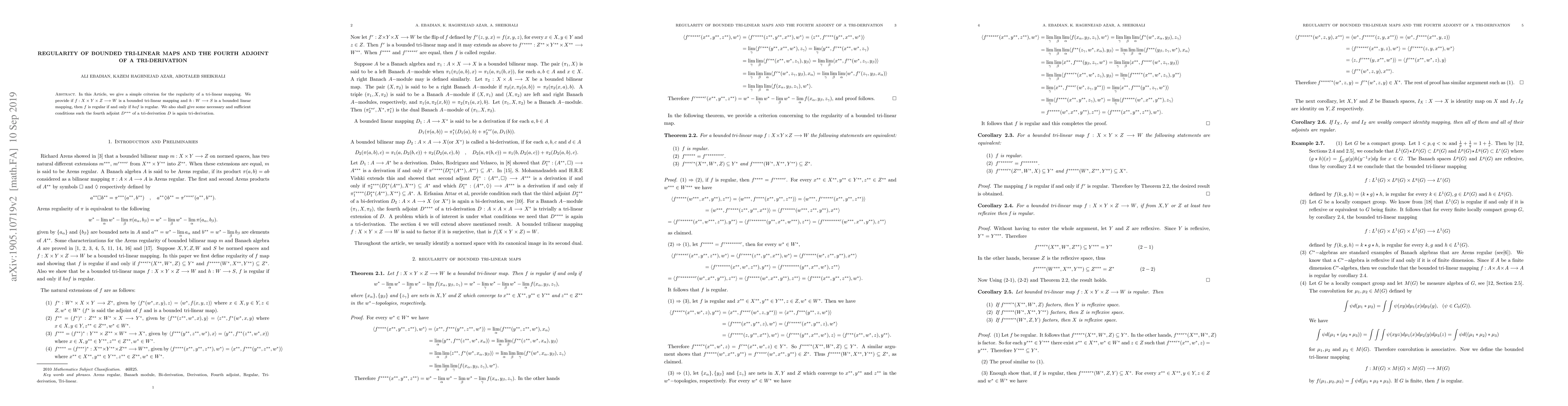 This paper introduces a criterion for regularity in tri-linear mappings, linking it to the regularity of linear mappings and the properties of the fourth adjoint of a tri-derivation.