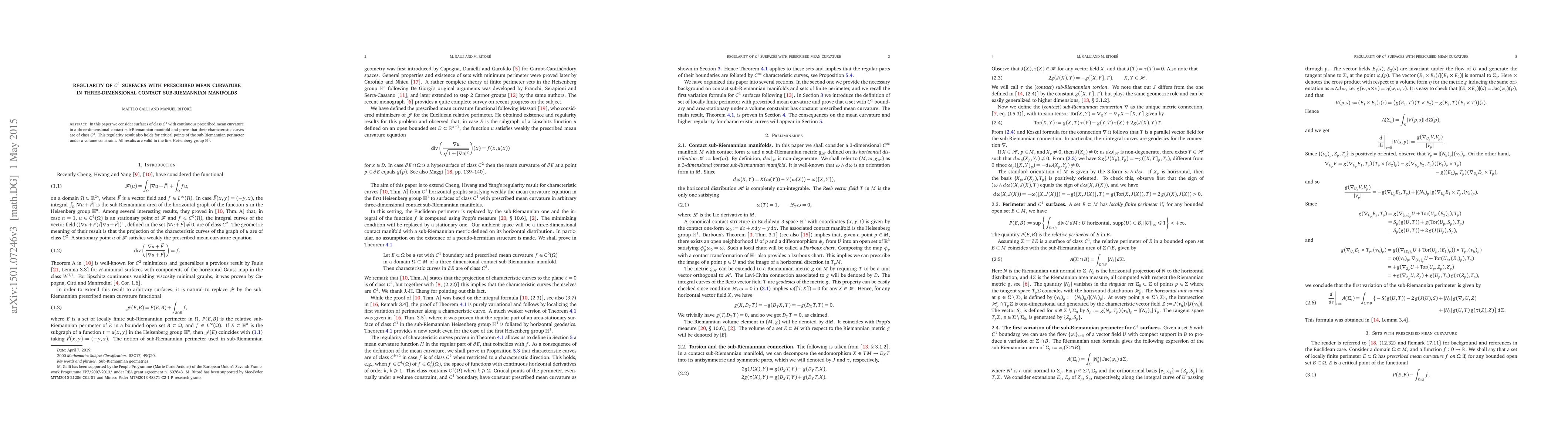 Researchers prove that surfaces with prescribed mean curvature in 3D contact sub-Riemannian manifolds have C^2 characteristic curves, with implications for understanding critical points of the perimeter under volume constraints.