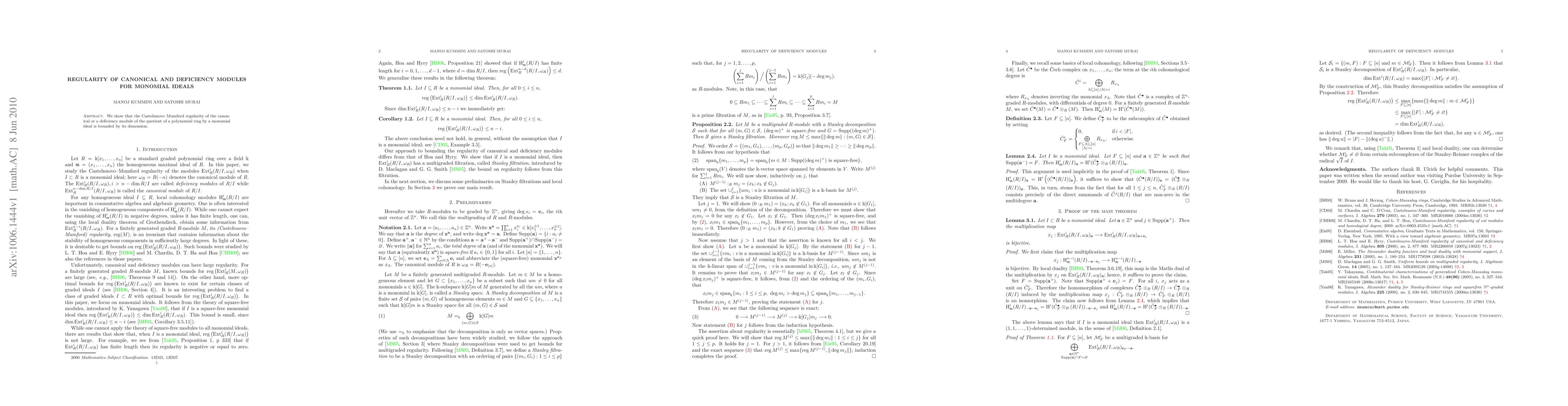 The paper demonstrates that the Castelnuovo-Mumford regularity of either the canonical or deficiency module for a quotient of a polynomial ring by a monomial ideal is limited by the dimension of the ideal. This establishes a bound on the regularity in terms of algebraic structure.