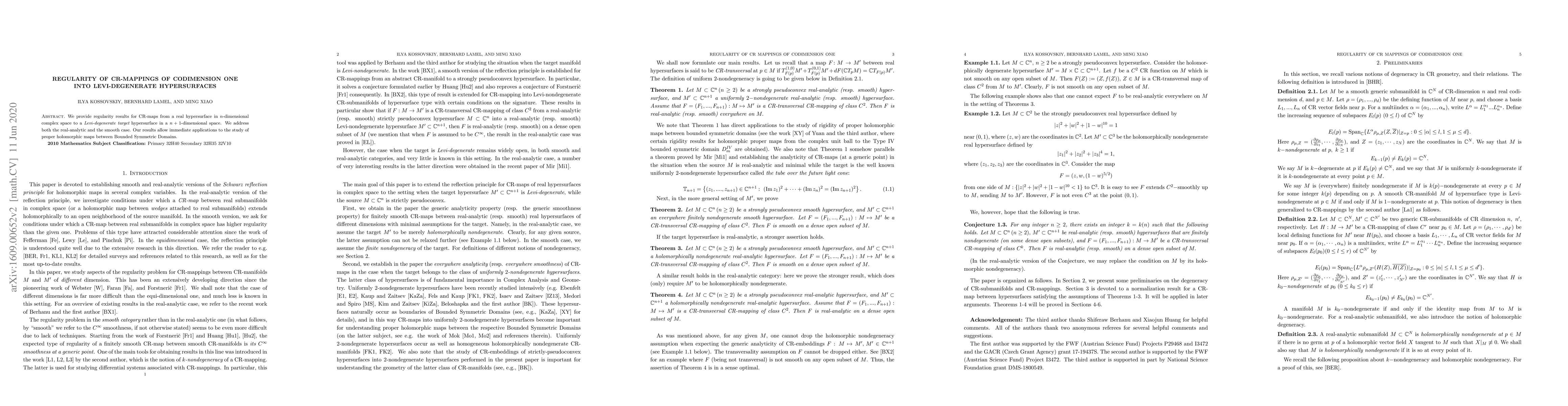 This paper presents regularity results for CR-mappings between real hypersurfaces in complex spaces, focusing on those with a Levi-degenerate target, covering both real-analytic and smooth cases, with applications to proper holomorphic maps in Bounded Symmetric Domains.