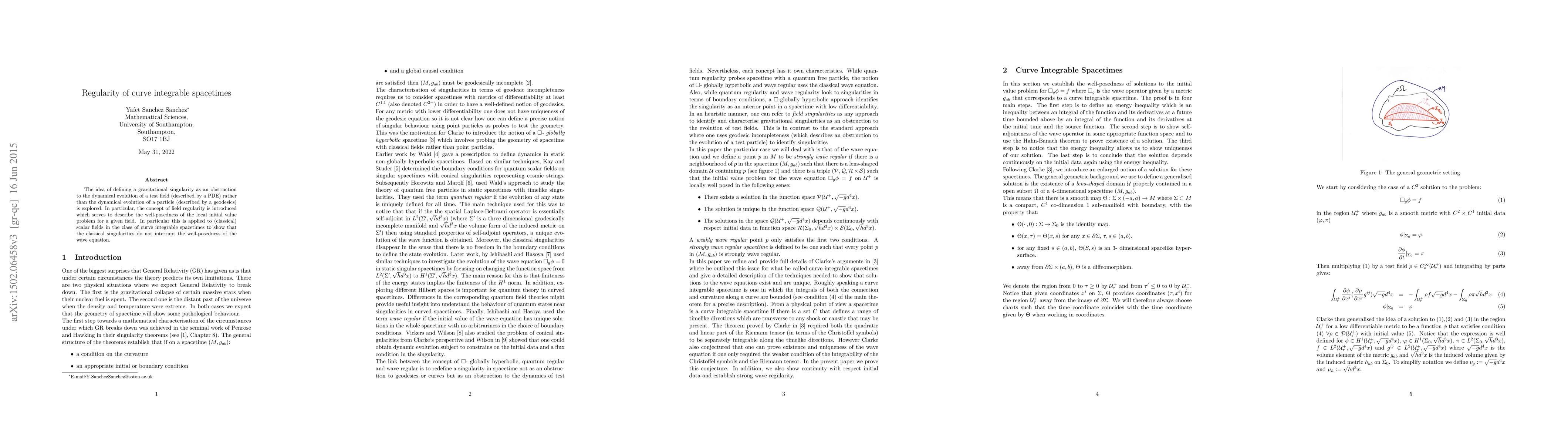 The idea of defining a gravitational singularity as an obstruction to the dynamical evolution of a test field (described by a PDE) rather than the dynamical evolution of a particle (described by a geodesics) is explored. In particular, the concept of field regularity is introduced which serves to describe the well-posedness of the local initial value problem for a given field.In particular this is applied to (classical) scalar fields in the class of curve integrable spacetimes to show that the classical singularities do not interrupt the well-posedness of the wave equation.