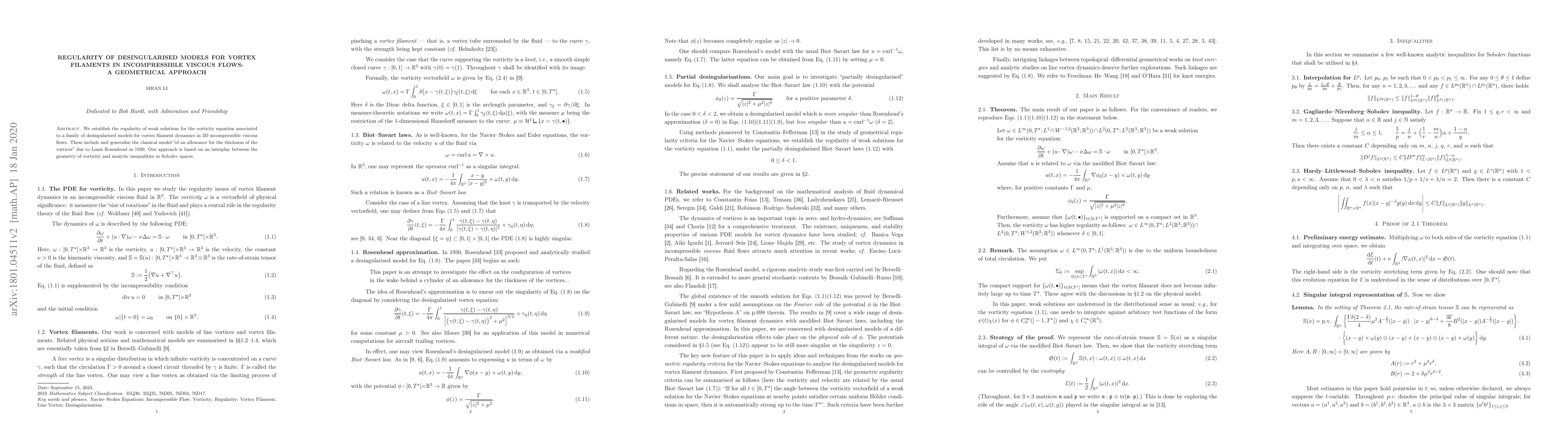 This paper establishes the regularity of weak solutions for desingularised models of vortex filaments in 3D incompressible viscous flows, generalizing the classical Rosenhead model, using a geometrical approach that combines vorticity geometry with analytic inequalities in Sobolev spaces.