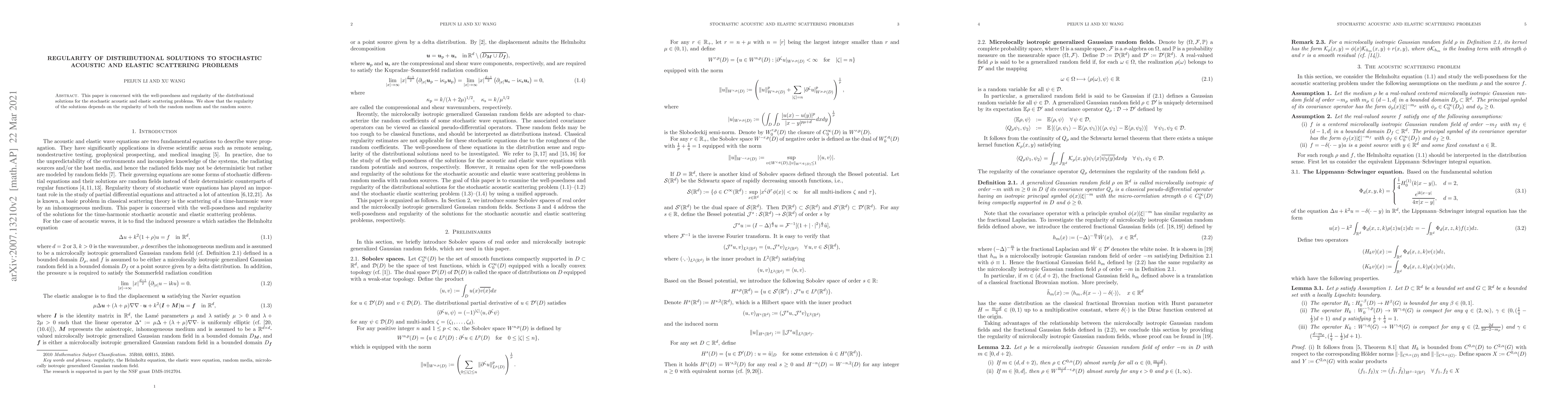 The paper explores the regularity of solutions for stochastic acoustic and elastic scattering problems, showing that solution regularity depends on both the random medium and source regularity, ensuring well-posedness of these complex scattering issues.