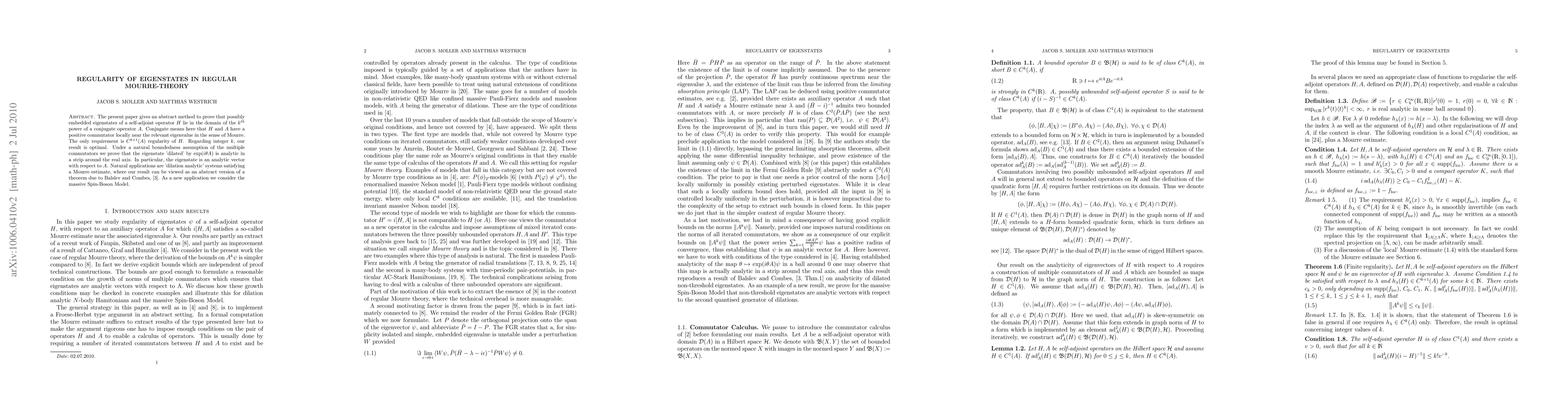 The present paper gives an abstract method to prove that possibly embedded eigenstates of a self-adjoint operator $H$ lie in the domain of the $k^{th}$ power of a conjugate operator $A$. Conjugate means here that $H$ and $A$ have a positive commutator locally near the relevant eigenvalue in the sense of Mourre. The only requirement is $C^{k+1}(A)$ regularity of $H$. Regarding integer $k$, our result is optimal. Under a natural boundedness assumption of the multiple commutators we prove that the eigenstate 'dilated' by $\exp(i\theta A)$ is analytic in a strip around the real axis. In particular, the eigenstate is an analytic vector with respect to $A$. Natural applications are 'dilation analytic' systems satisfying a Mourre estimate, where our result can be viewed as an abstract version of a theorem due to Balslev and Combes. As a new application we consider the massive Spin-Boson Model.