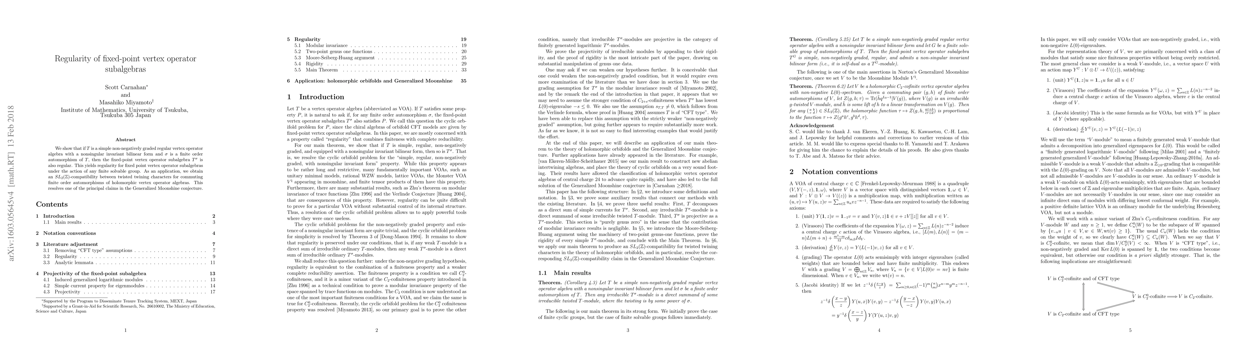 This paper demonstrates that fixed-point subalgebras of a regular vertex operator algebra under a finite order automorphism are also regular, extending this result to any finite solvable group. It also resolves a key part of the Generalized Moonshine conjecture regarding $SL_2(\mathbb{Z})$-compatibility of twisted twining characters.