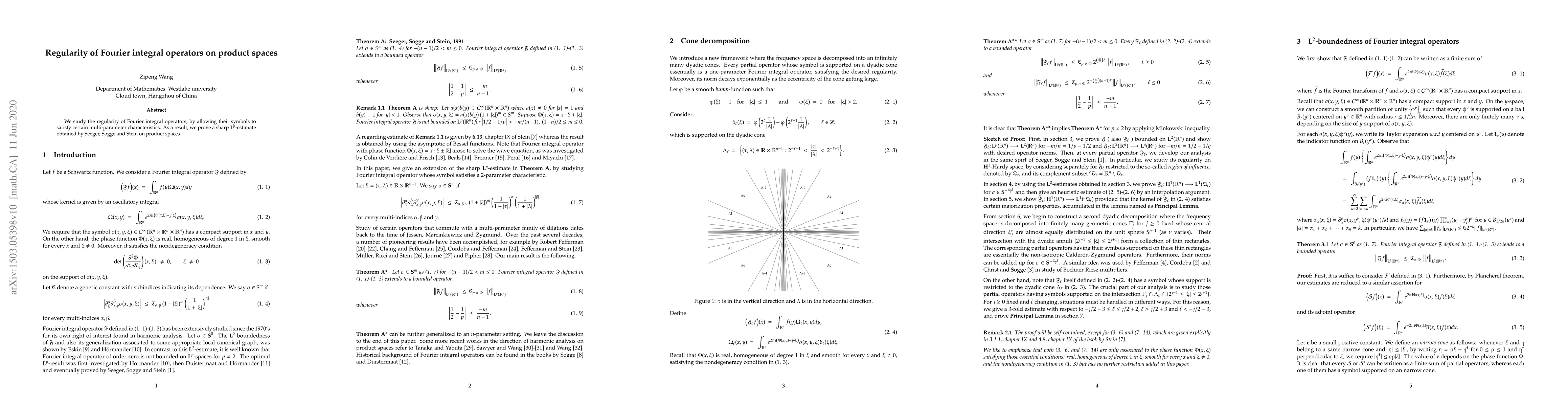 We study the regularity of Fourier integral operators, by allowing their symbols to satisfy certain multi-parameter characteristics. As a result, we give an extension of Seeger-Sogge-Stein theorem on product spaces.