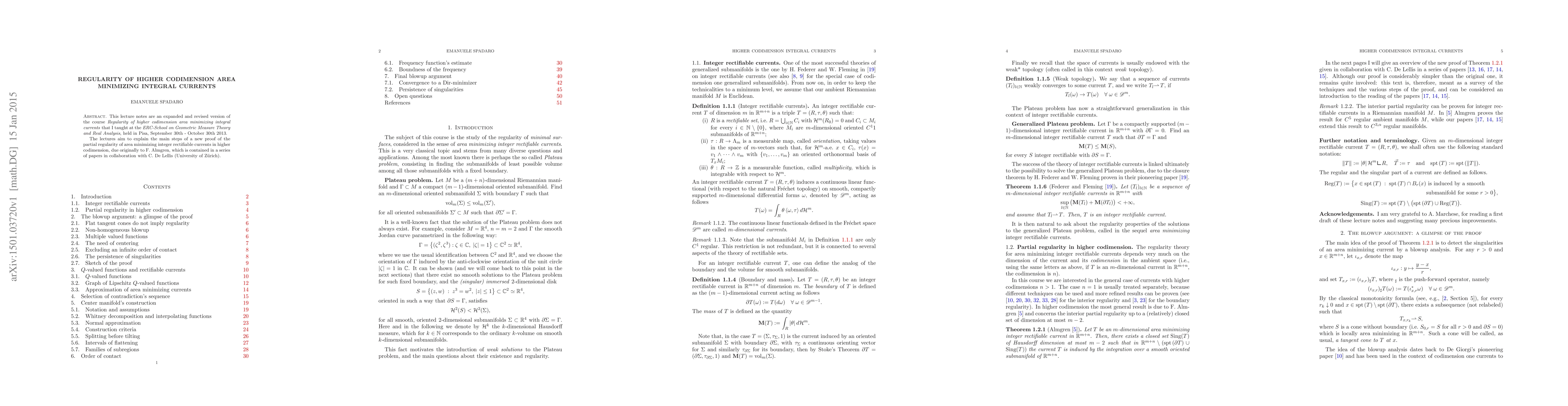This lecture notes are an expanded version of the course given at the ERC-School on Geometric Measure Theory and Real Analysis, held in Pisa, September 30th - October 30th 2013. The lectures aim to explain the main steps of a new proof of the partial regularity of area minimizing integer rectifiable currents in higher codimension, due originally to F. Almgren, which is contained in a series of papers in collaboration with C. De Lellis (University of Zurich).