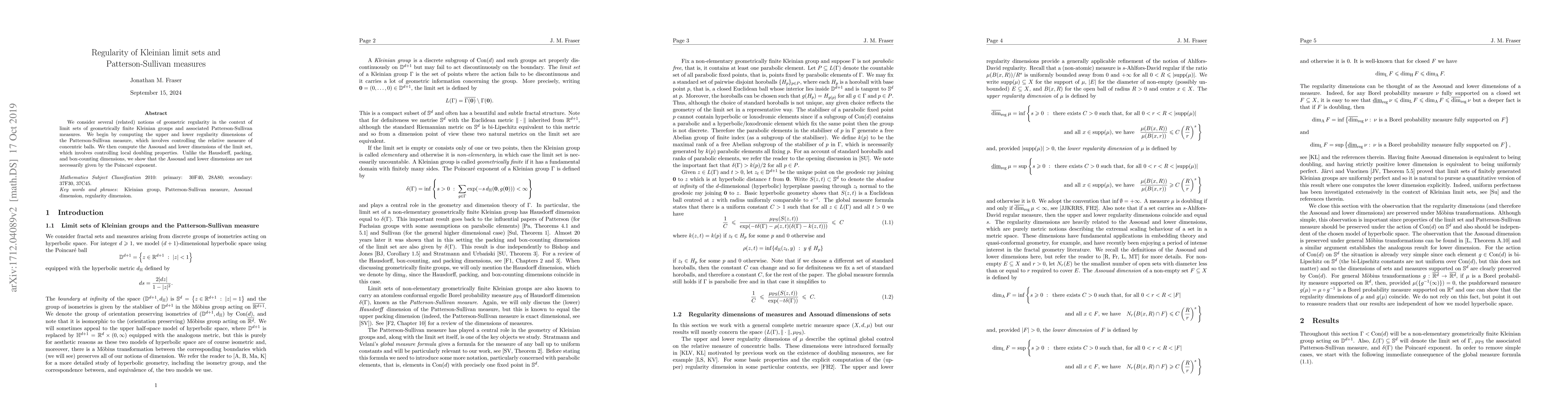 This paper investigates geometric regularity in Kleinian limit sets and associated Patterson-Sullivan measures, computing their upper and lower regularity dimensions. It finds that Assouad and lower dimensions do not always align with the Poincaré exponent, unlike other dimension measures.