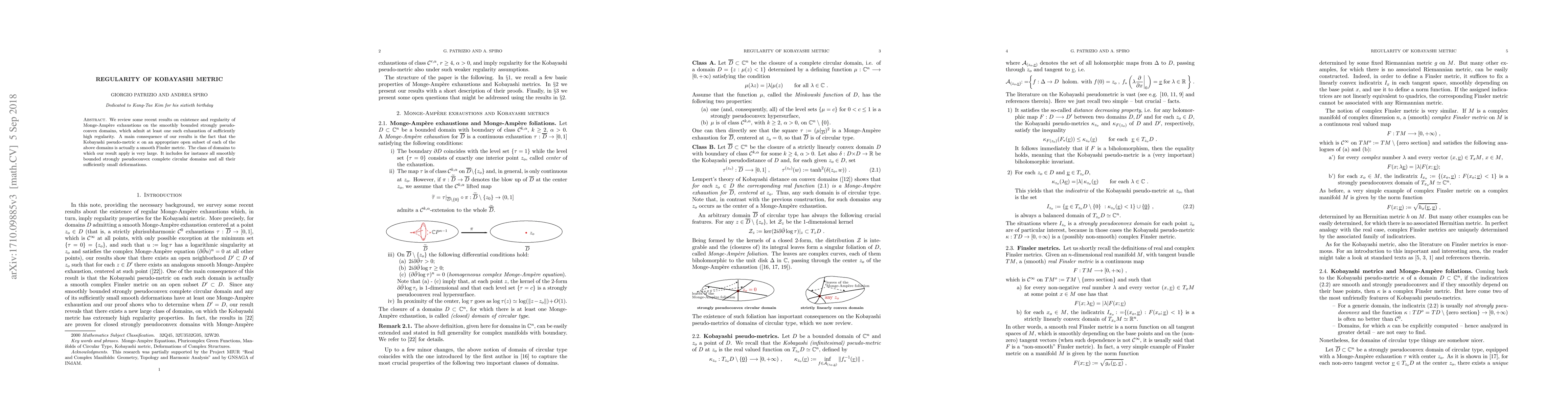 The paper presents a detailed analysis of the regularity of the Kobayashi metric, linking it to the existence of high-regularity Monge-Ampère exhaustions and demonstrating its smooth Finsler metric properties on appropriate subsets of strongly pseudoconvex domains.