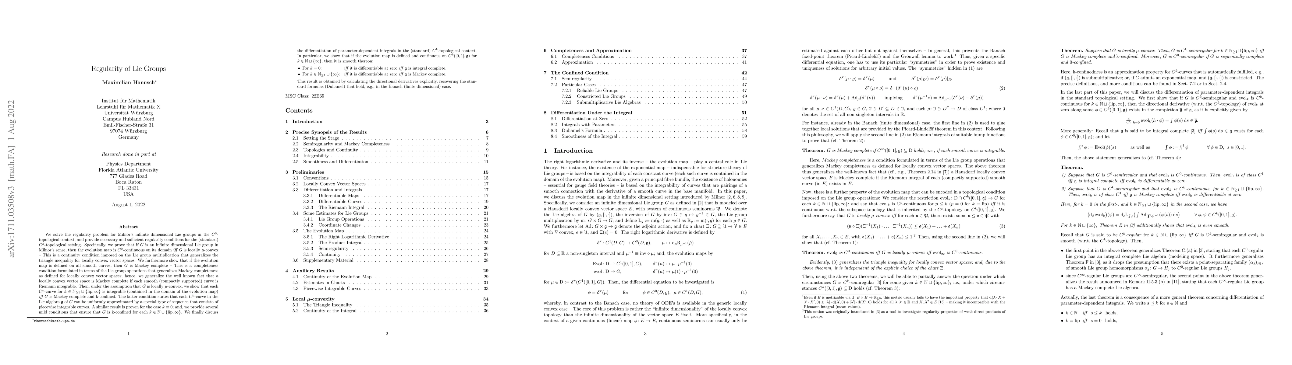 This paper addresses the regularity conditions for Milnor's infinite-dimensional Lie groups, proving that the evolution map's continuity is equivalent to the group's local $\mu$-convexity and Mackey completeness. It also establishes conditions for the integrability of $C^k$-curves in the group and Lie algebra under various $k$ values.