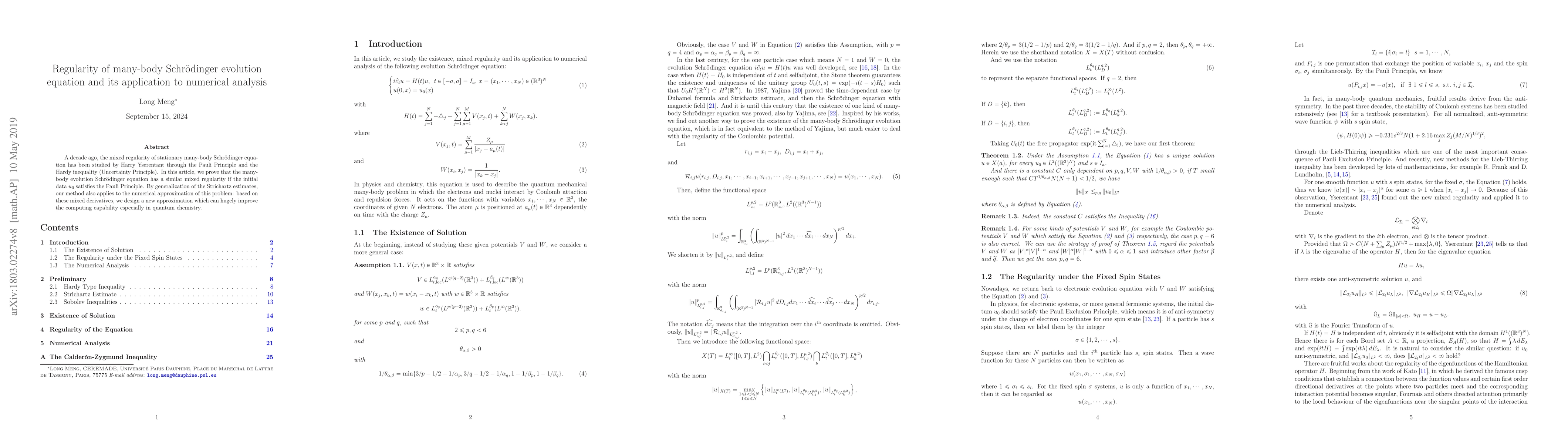 A decade ago, the mixed regularity of stationary many-body Schr\"o\-dinger equation has been studied by Harry Yserentant through the Pauli Principle and the Hardy inequality (Uncertainty Principle). In this article, we prove that the many-body evolution Schr\"odinger equation has a similar mixed regularity if the initial data $u_0$ satisfies the Pauli Principle. By generalization of the Strichartz estimates, our method also applies to the numerical approximation of this problem: based on these mixed derivatives, we design a new approximation which can hugely improve the computing capability especially in quantum chemistry.