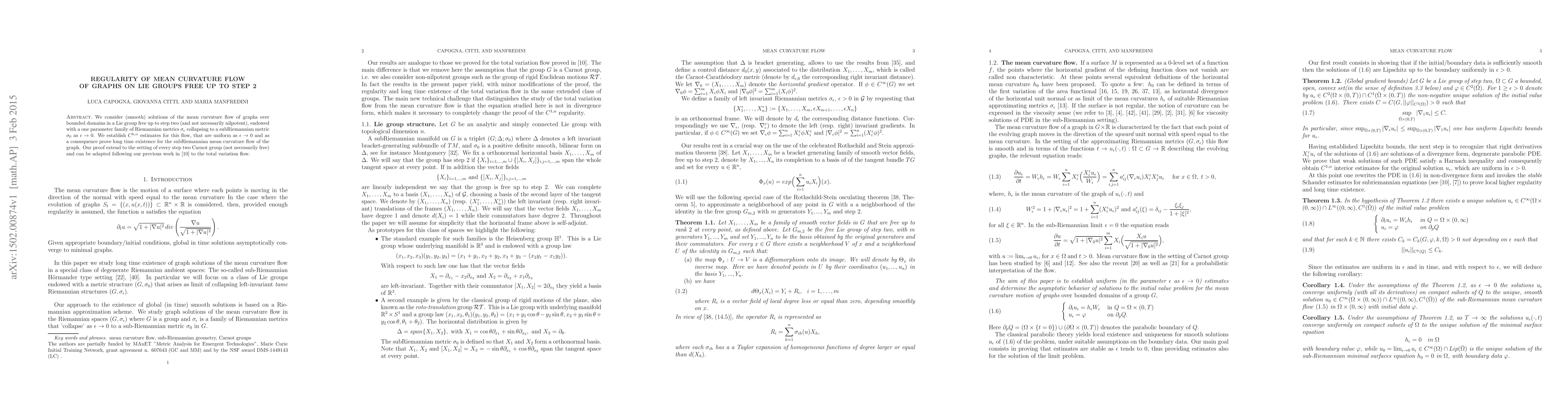 Research establishes C^{k,eta} estimates for mean curvature flow of graphs on Lie groups, proving long time existence and adapting to various Carnot group settings.