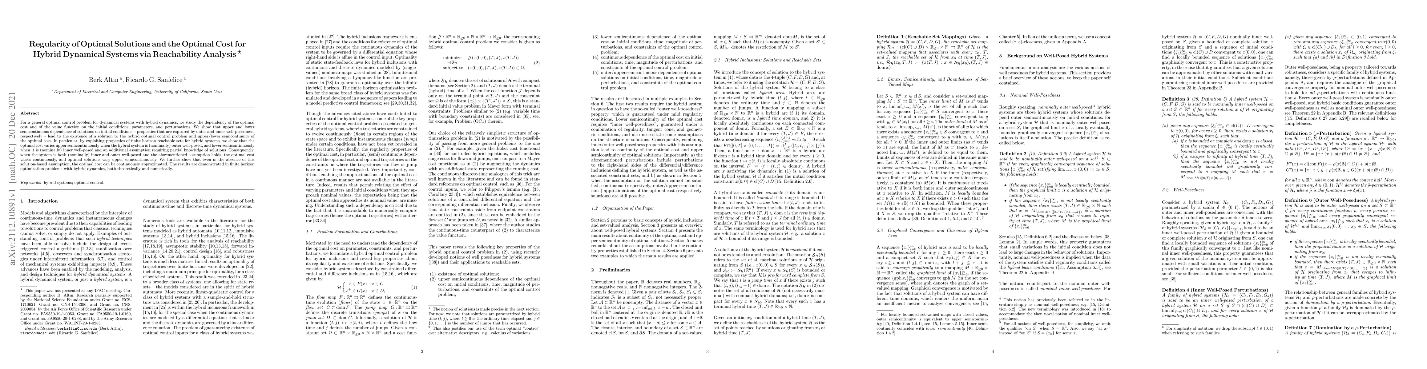 This paper investigates the regularity of optimal solutions and the optimal cost for hybrid dynamical systems through reachability analysis, proving that semicontinuous dependence on initial conditions leads to semicontinuous or continuous variation of optimal costs under different well-posedness conditions. The findings are validated through both theoretical and numerical examples.