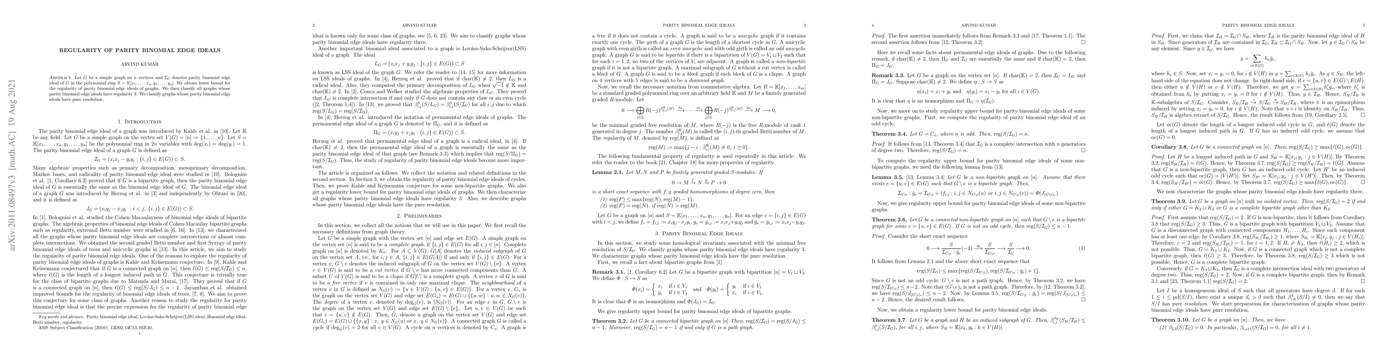 Let $G$ be a simple graph on $n$ vertices and $\mathcal{I}_G$ denotes parity binomial edge ideal of $G$ in the polynomial ring $S = \mathbb{K}[x_1,\ldots, x_n, y_1, \ldots, y_n].$ We obtain a lower bound for the regularity of parity binomial edge ideals of graphs. We then classify all graphs whose parity binomial edge ideals have regularity $3$. We classify graphs whose parity binomial edge ideals have pure resolution.
