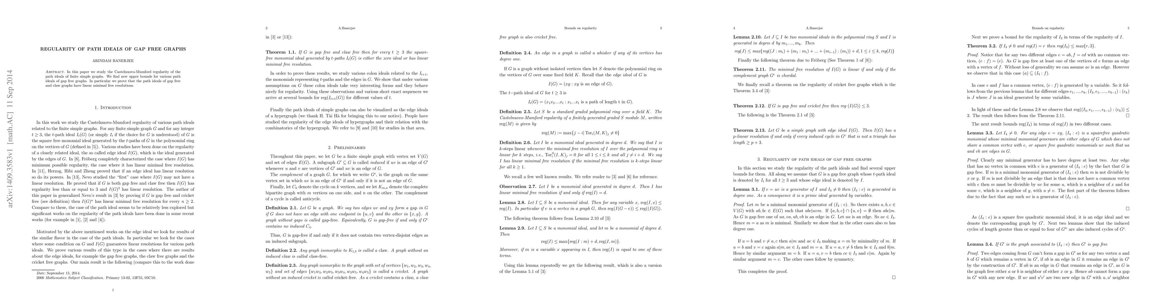 Researchers found new upper bounds for path ideals of gap-free graphs, proving that these ideals have linear minimal free resolutions in both gap-free and claw graphs.