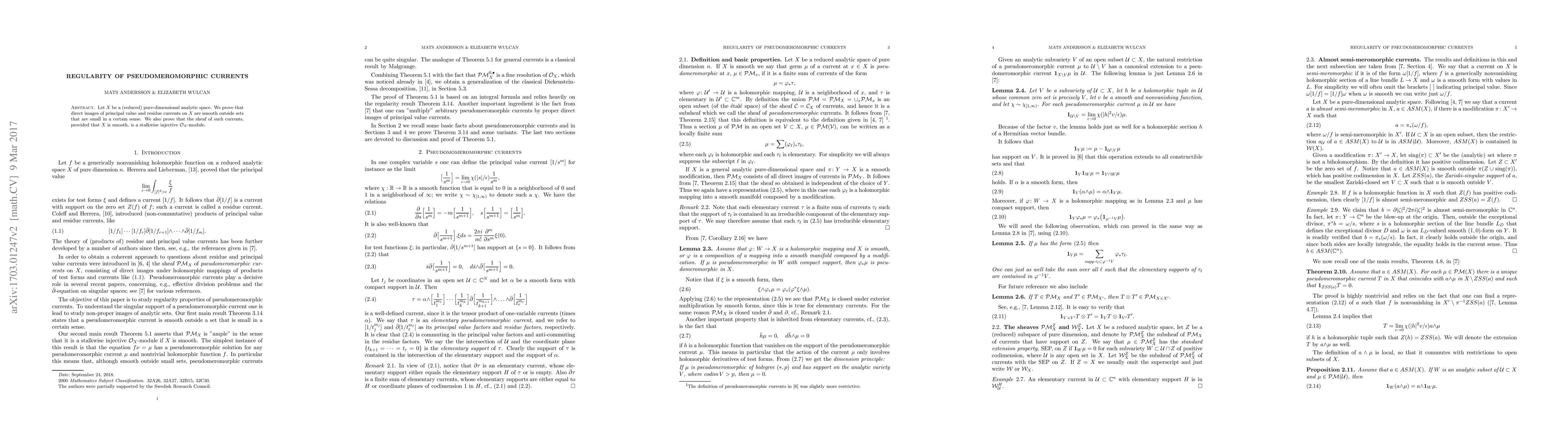 Let $X$ be a (reduced) pure-dimensional analytic space. We prove that direct images of principal value and residue currents on $X$ are smooth outside sets that are small in a certain sense. We also prove that the sheaf of such currents, provided that $X$ is smooth, is a stalkwise injective $\Ok_X$-module.