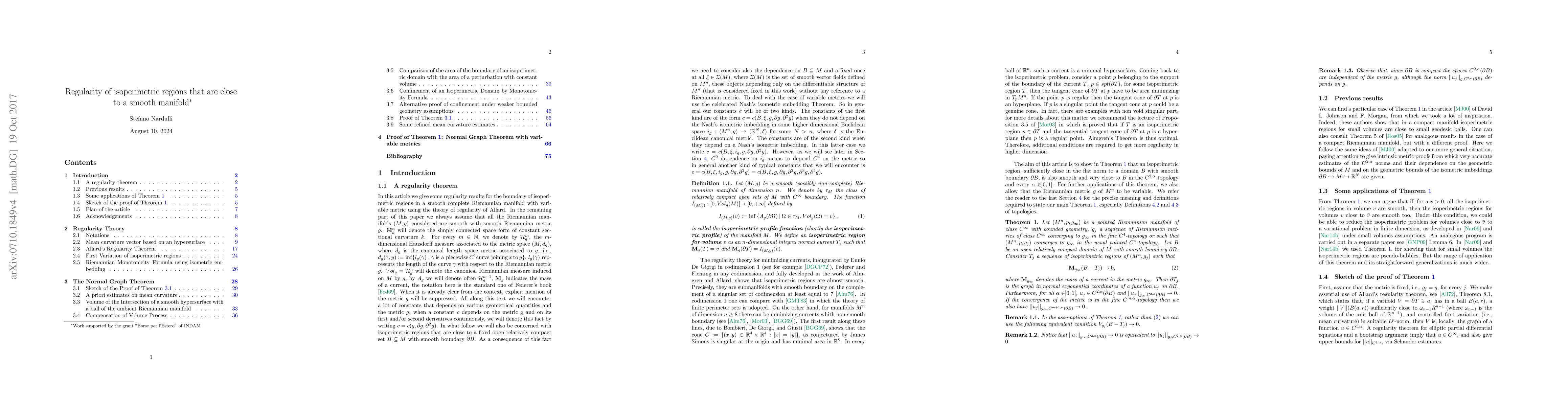 In this work we consider a question in the calculus of variations motivated by riemannian geometry, the isoperimetric problem. We show that solutions to the isoperimetric problem, close in the flat norm to a smooth submanifold, are themselves smooth and $C^{2,\alpha}$-close to the given sub manifold. We show also a version with variable metric on the manifold. The techniques used are, among other, the standards outils of linear elliptic analysis and comparison theorems of riemannian geometry, Allard's regularity theorem for minimizing varifolds, the isometric immersion theorem of Nash and a parametric version due to Gromov.